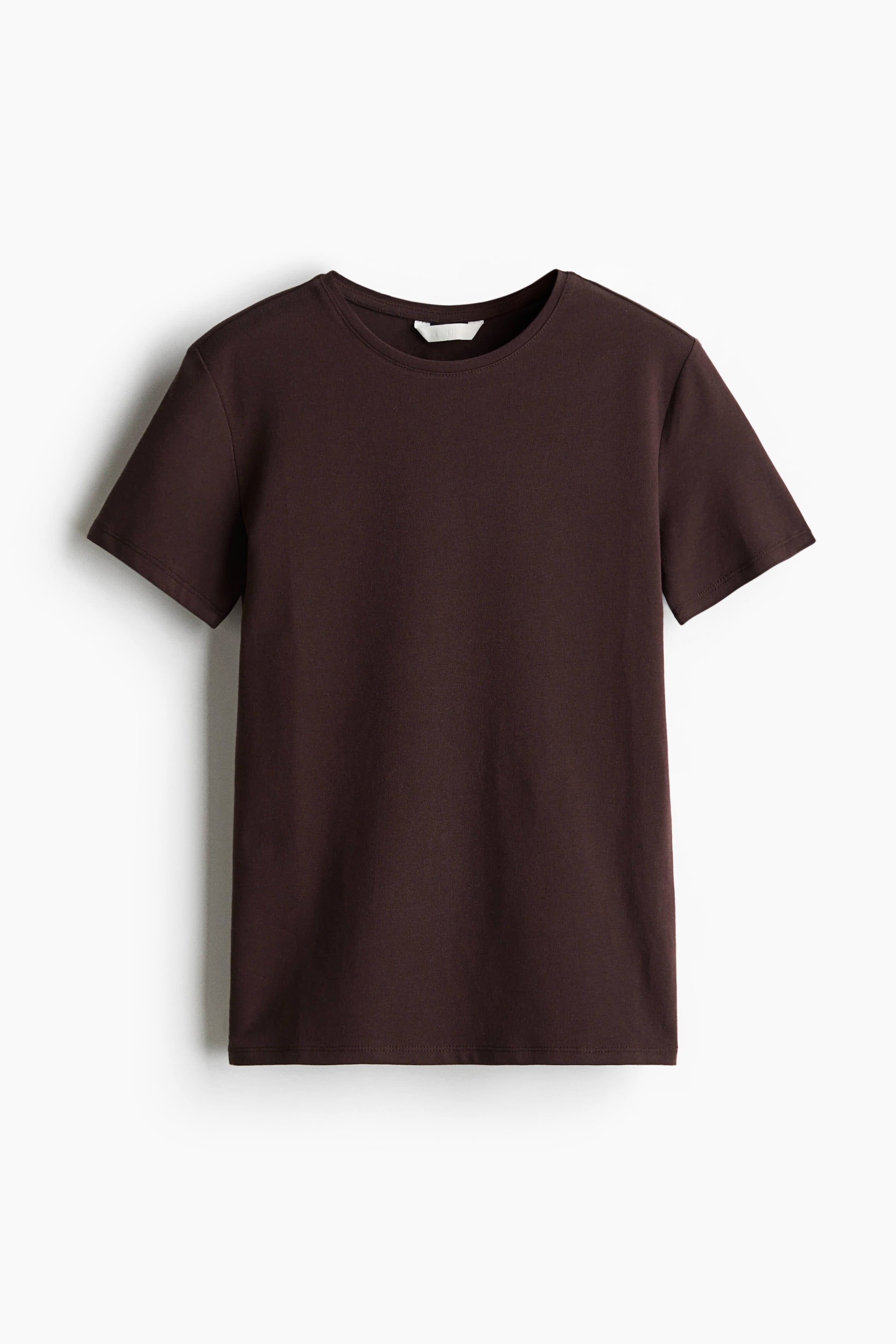 T-shirt en jersey de coton extensible. Modèle ajusté avec petite bande d'encolure et bas droit.
