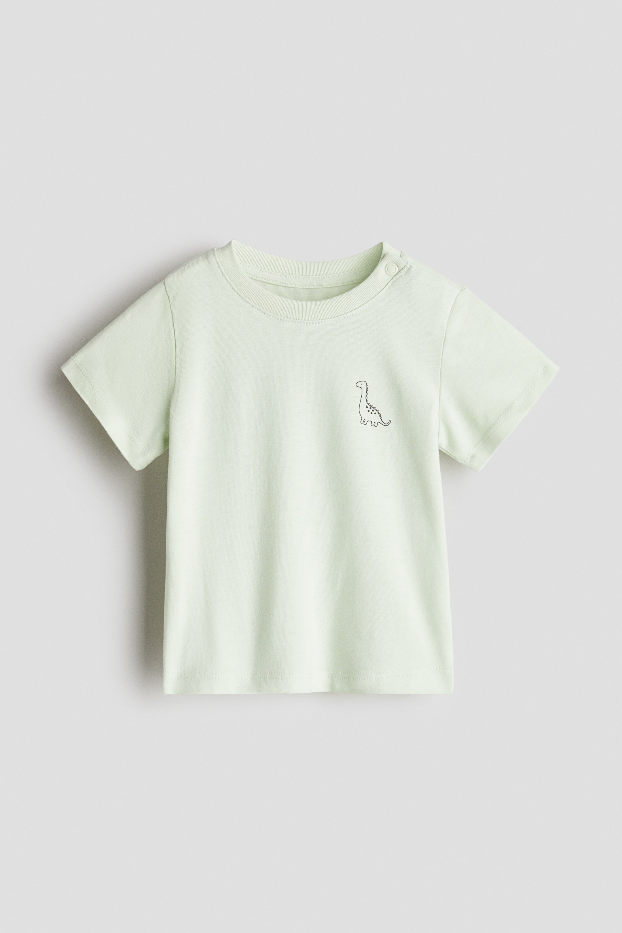 T-shirt classique en jersey de coton doux avec bord-côte autour de l'encolure ronde. Modèle avec bouton-pression sur une épaule (sauf tailles 98 à 104).