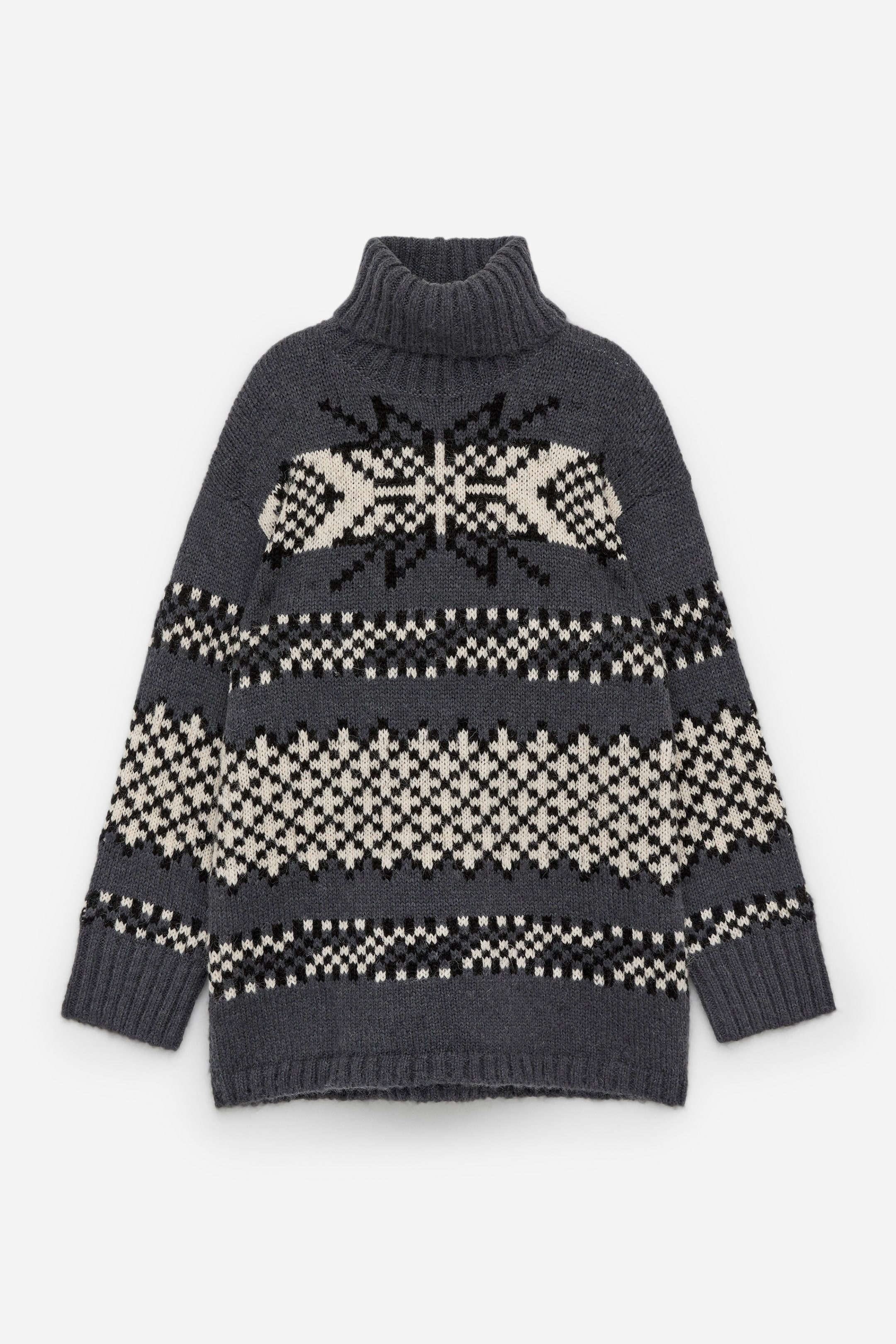 Confectionné en maille jacquard, ce pull à la coupe décontracté arbore un col roulé côtelé. Un modèle confortable réalisé à partir d'un mélange d'alpaga et de laine.