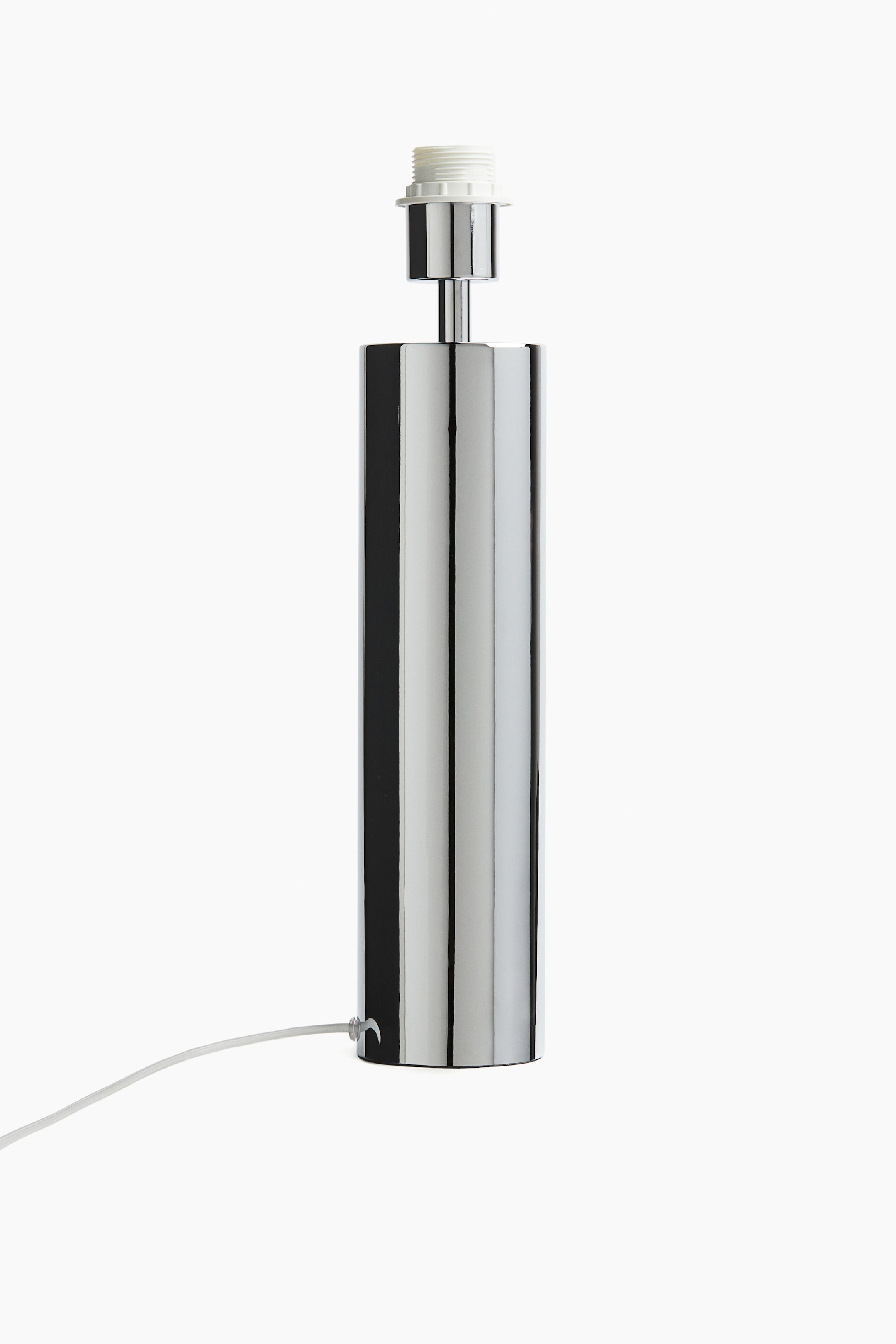 Grand pied de lampe cylindrique en métal avec câble habillé de textile et interrupteur en plastique. Douille de type E27. 15 W maximum. Ampoule et abat-jour non inclus. Diamètre 9 cm. Hauteur 41 cm. Longueur du câble 2 m.