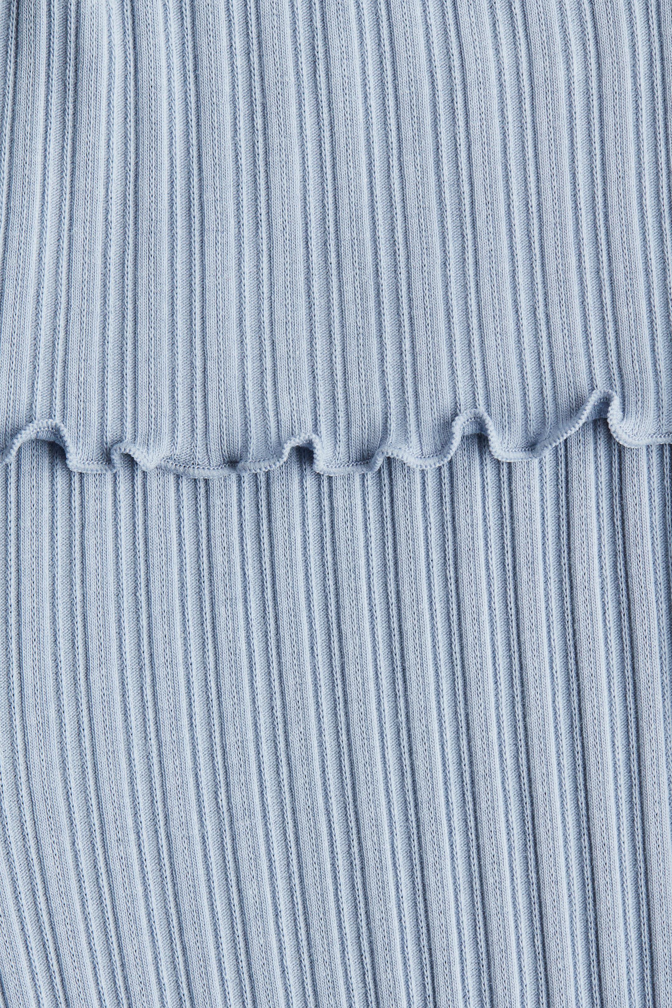 Pantalon en jersey de coton côtelé avec bords surjetés. Modèle avec ceinture élastique repliée et jambes évasées.