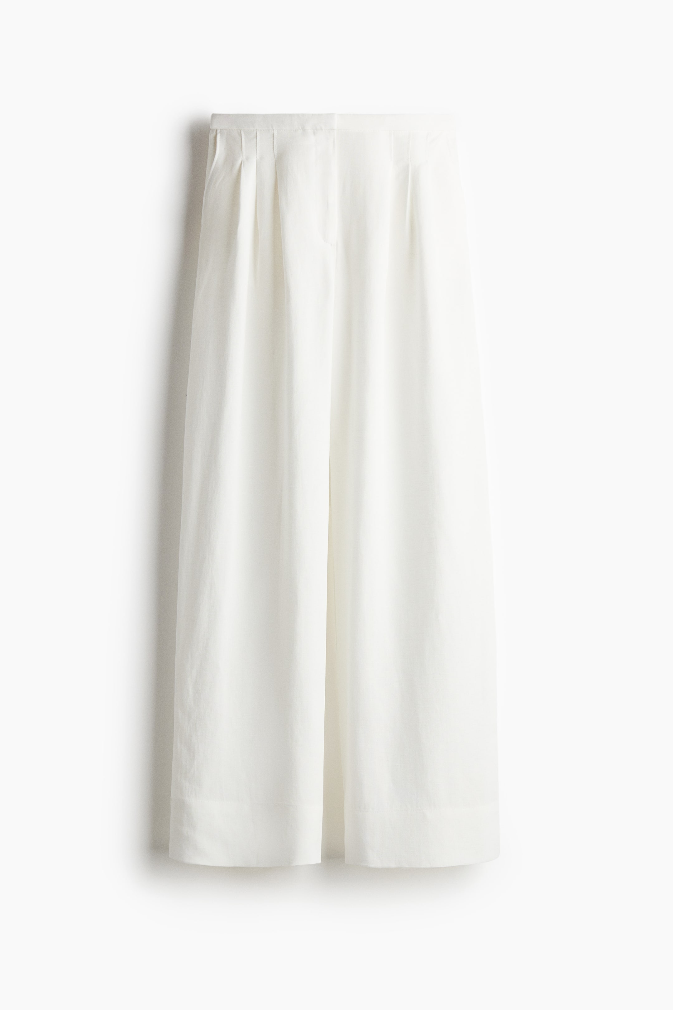 Pantalon en tissu de lin et lyocell mélangés. Coupe flottante avec pinces devant et braguette zippée surmontée d'une fermeture par agrafe et barrette dissimulées. Poches italiennes et fausses poches raglan dans le dos. Jambes larges.