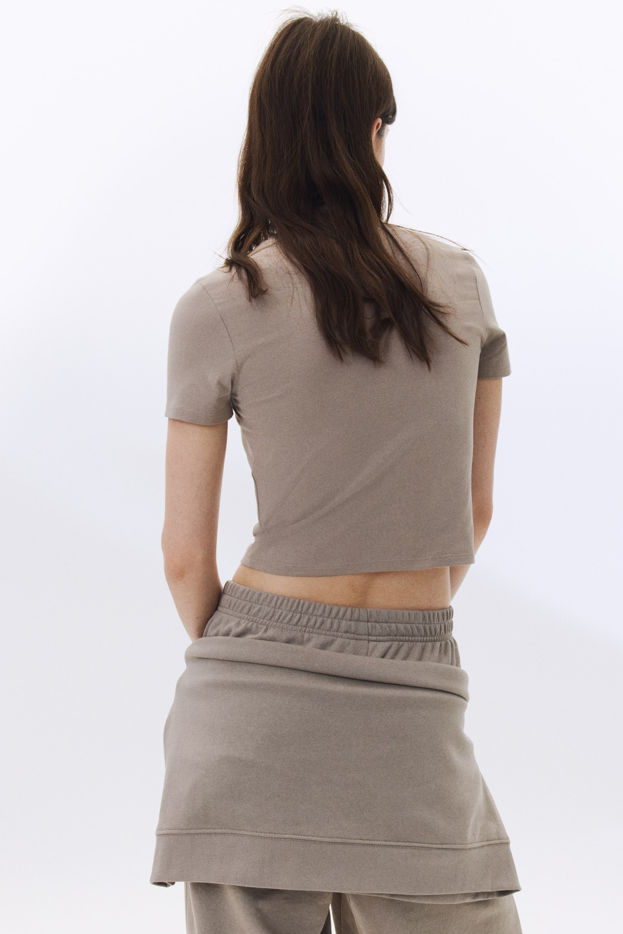T-shirt court et ajusté en jersey de coton doux. Modèle avec petite bande de finition autour de l'encolure ronde.