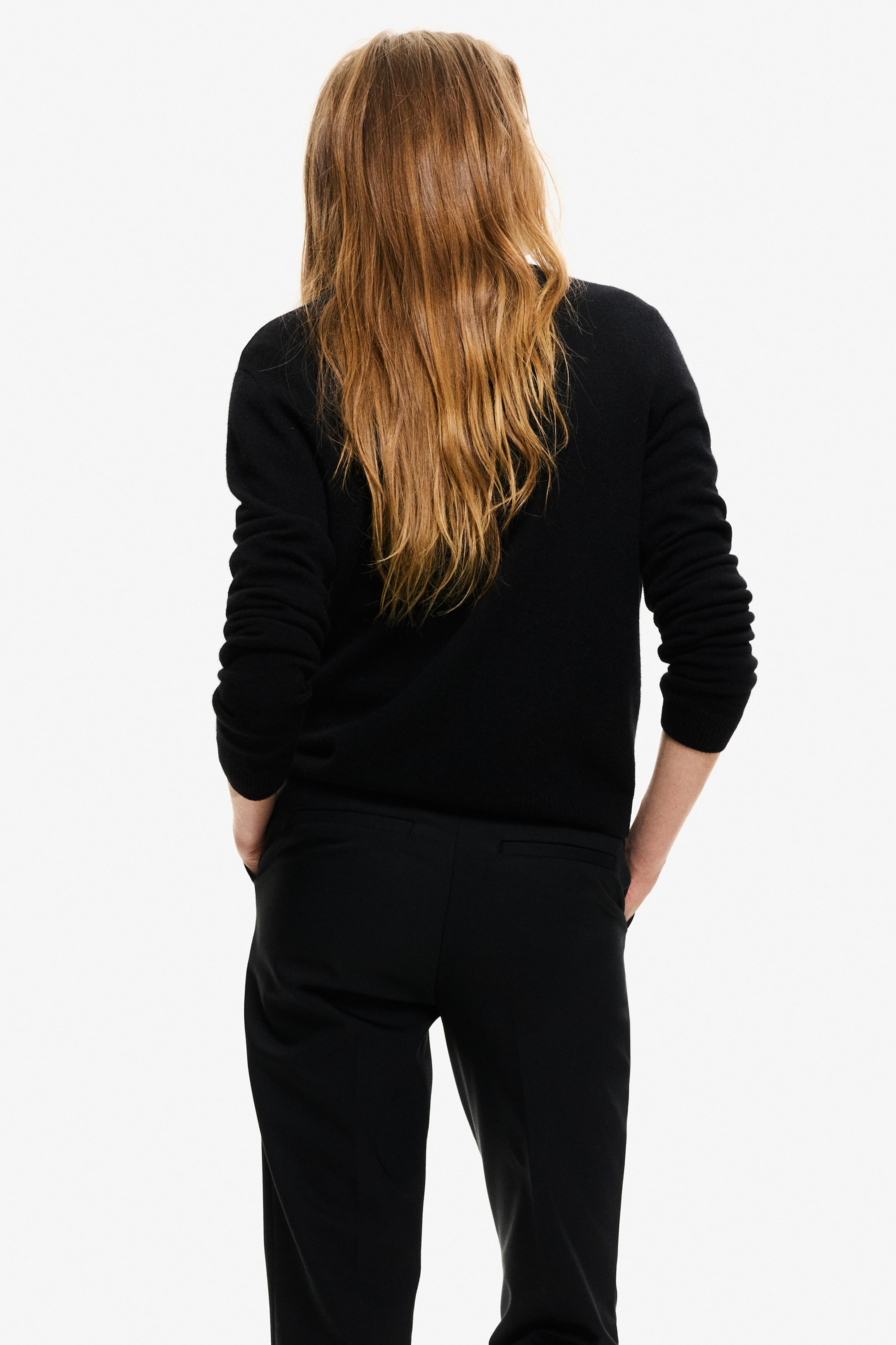 Pantalon cigarette en tissu extensible. Modèle avec taille de hauteur classique, élastique dissimulé dans la ceinture et braguette zippée surmontée d'une agrafe dissimulée. Poches latérales et fausses poches dans le dos. Jambes effilées, de longueur cheville.