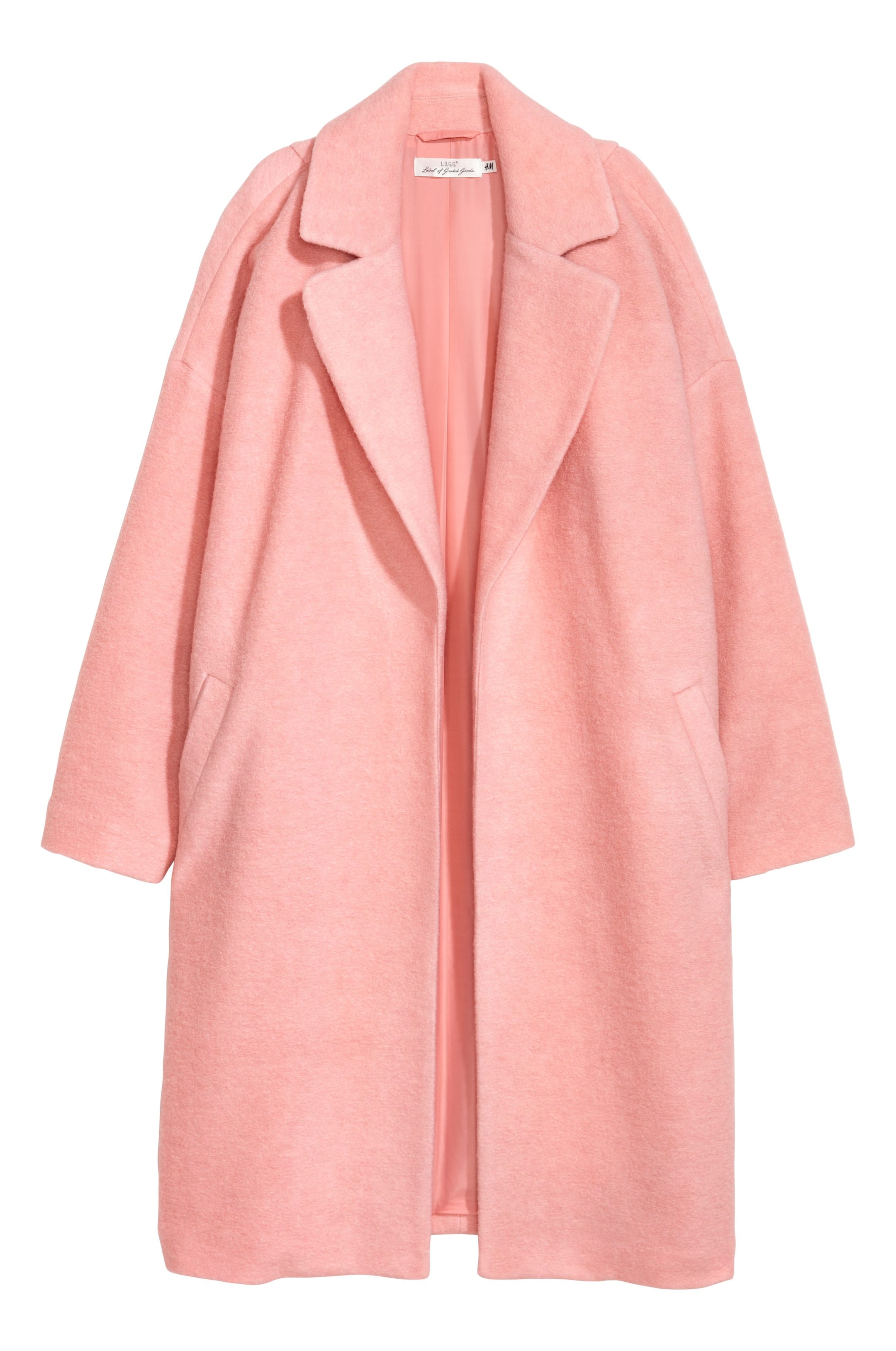 Manteau en laine mélangée. Modèle sans boutonnage avec col, revers et emmanchure fortement descendue. Poches latérales. Doublé.