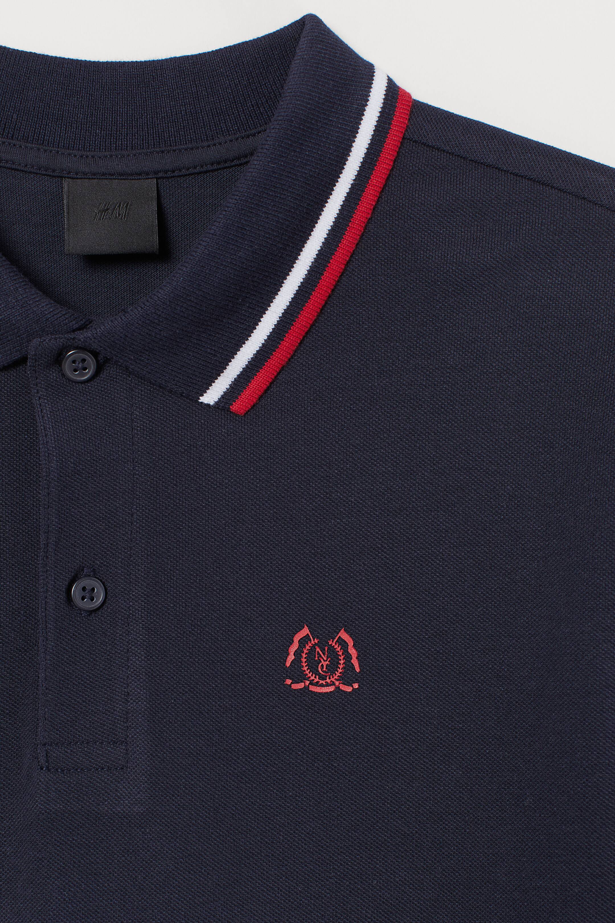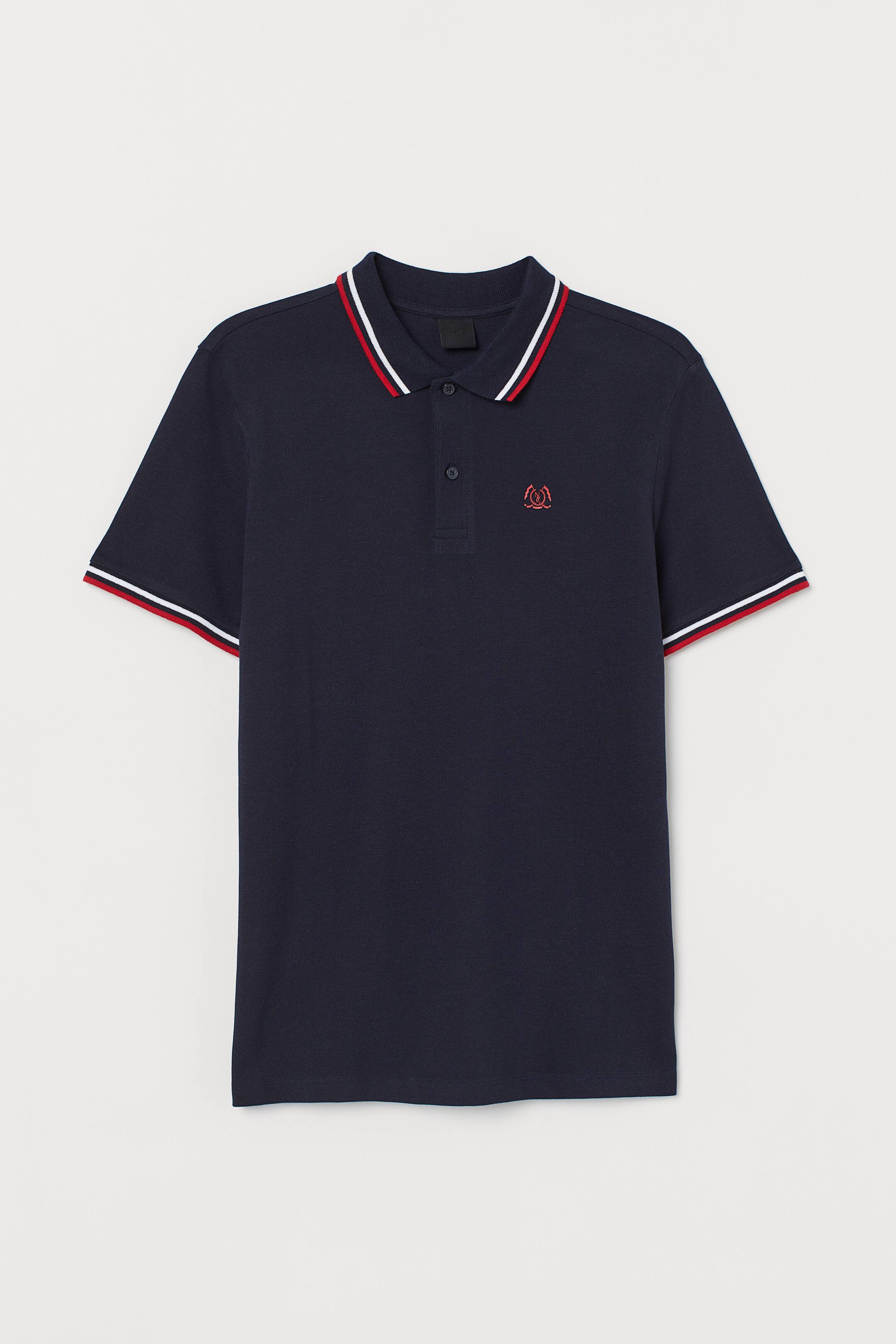 Polo à manches courtes en piqué de coton. Modèle avec col côtelé et boutonnage en haut.