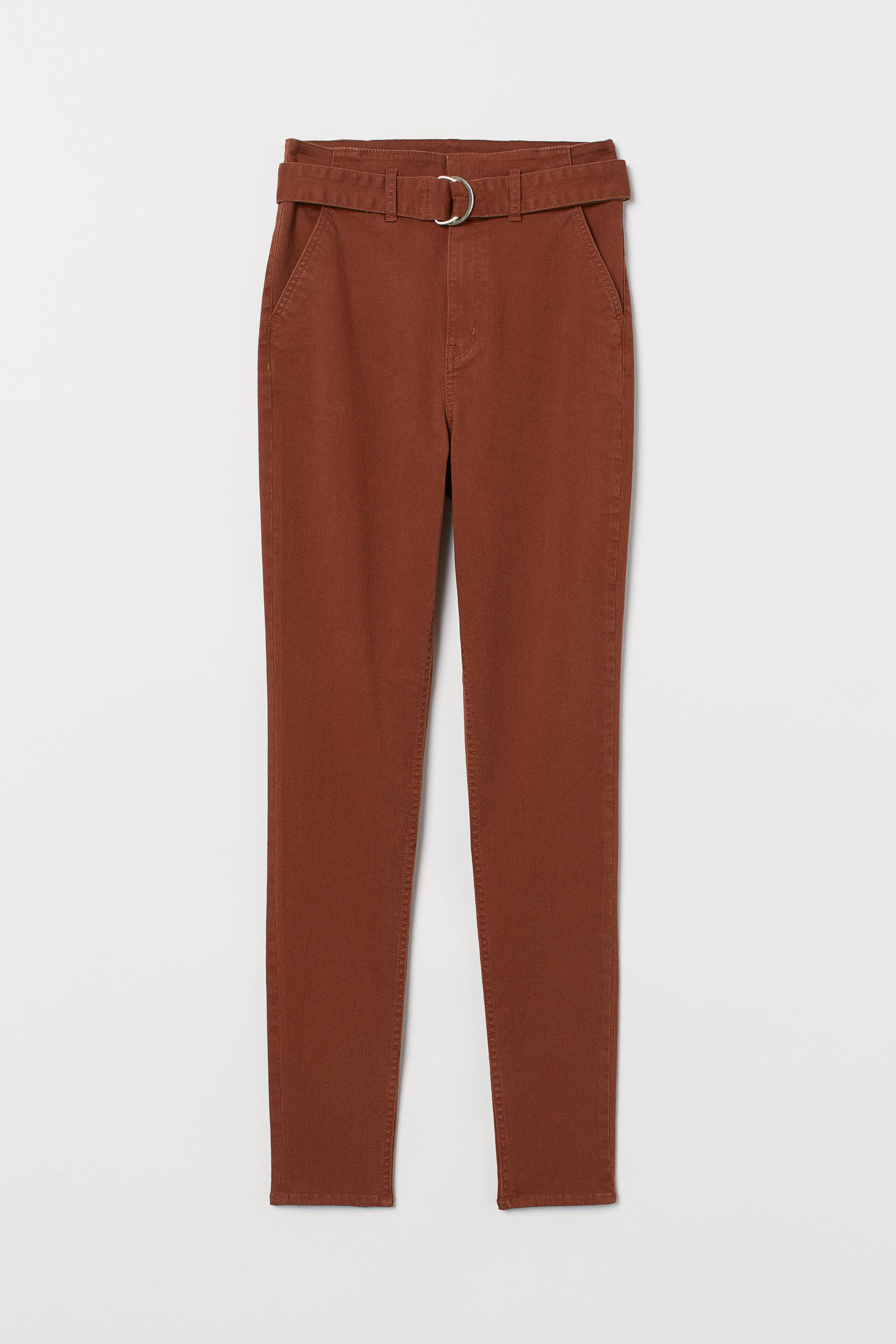 Pantalon en twill lavé extensible. Modèle taille haute avec ceinture amovible. Braguette zippée surmontée d’agrafes. Poches latérales et poches dans le dos. Jambes fines.