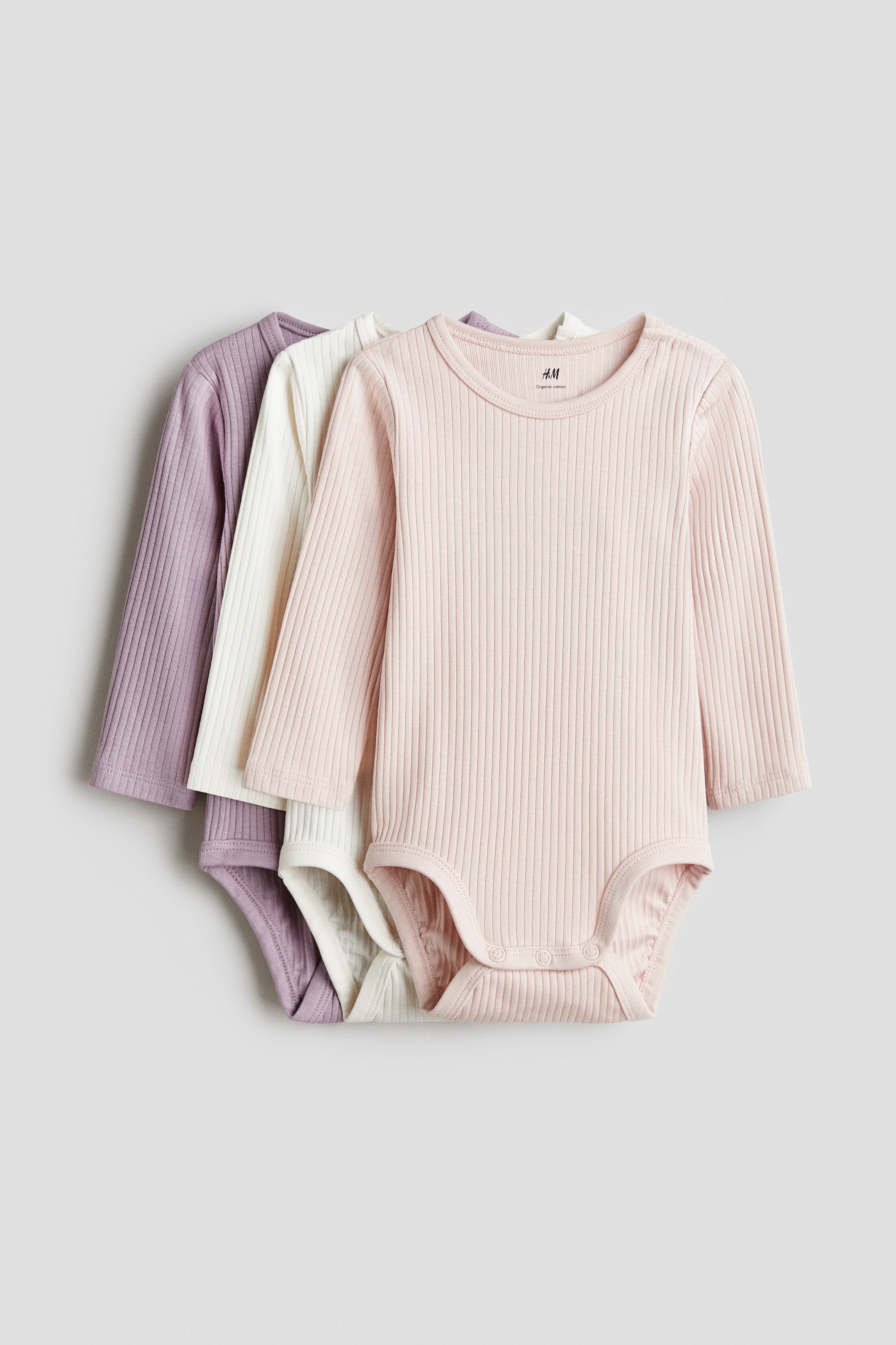 Bodies en jersey de coton doux et côtelé. Modèle à manches longues avec bouton-pression dissimulé sur une épaule et boutons-pression discrets à l'entrejambe pour faciliter le change.