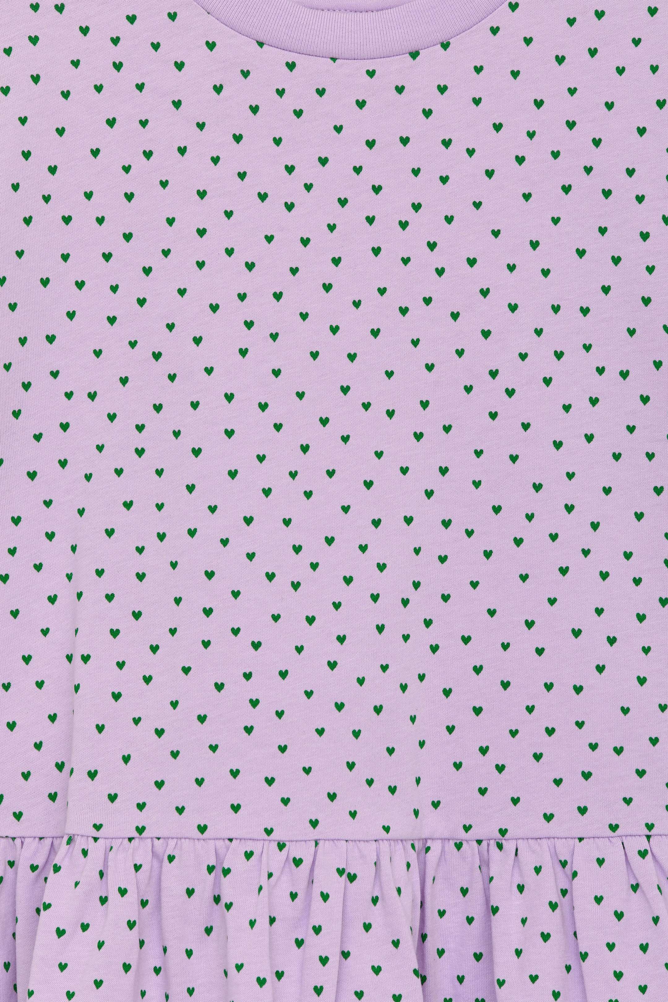 Robe à volants à manches courtes confectionnée en jersey de coton doux. Modèle de coupe décontractée avec des bordures côtelées à l'encolure et des fronces à la taille.