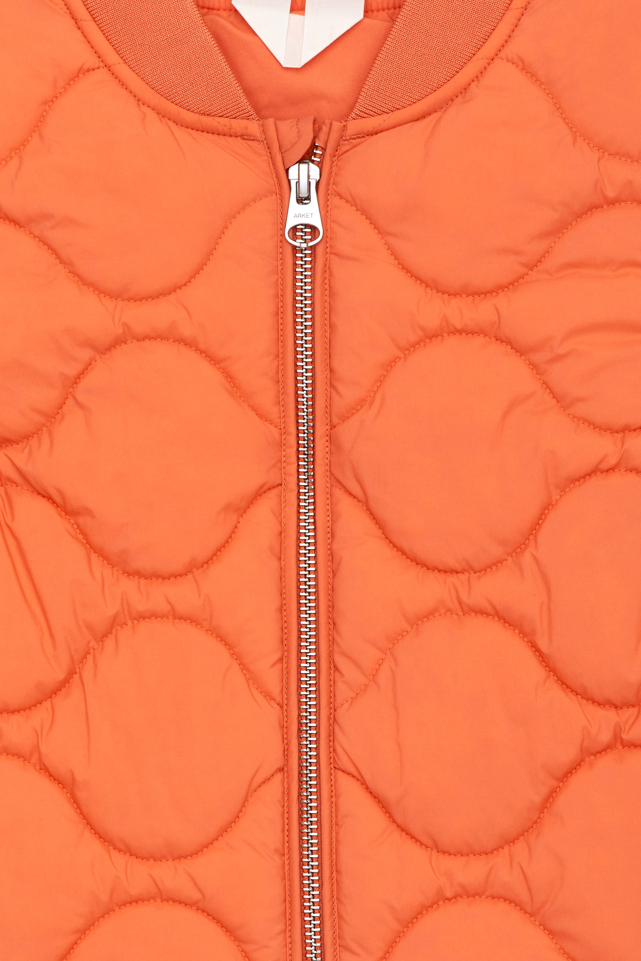 Gilet rembourré avec une surface matelassée. Il est doté d'une fermeture éclair en métal à l'avant et de poches sur les coutures latérales. Ourlet incurvé.