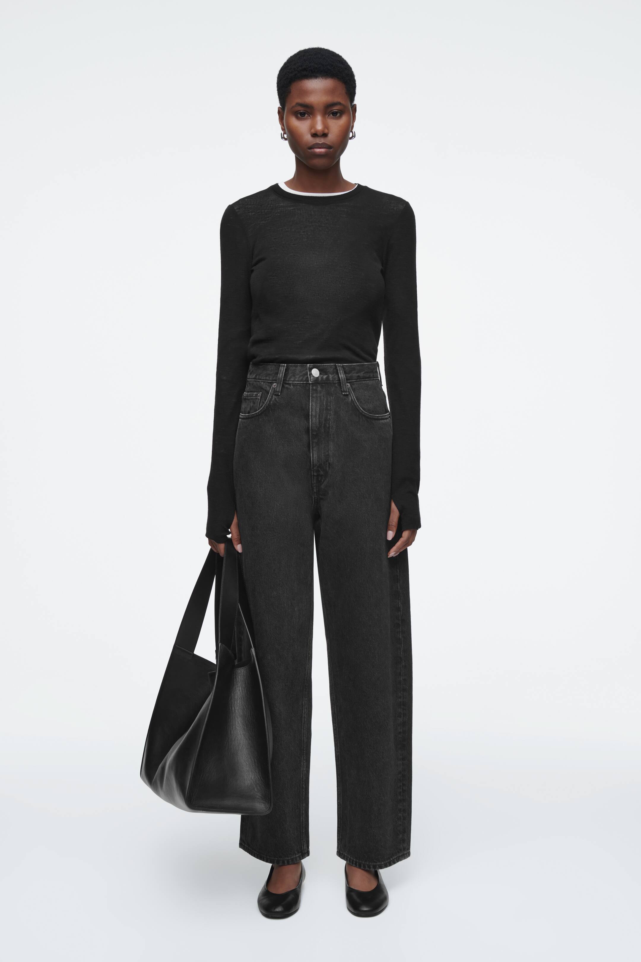 Tirant son nom de sa coupe incurvée originale, le jean Bay présente des jambes barrel et une confection en denim teint dans une couleur noire intemporelle. Note de style : portez-le avec un t-shirt, une chemise ou une maille. Coupe regular, taille mi-haute, jambes barrel, longueur cheville Bouton et braguette zippée, 12,8 oz Notre coton biologique est produit à partir de graines non modifiées génétiquement sans engrais ni pesticides chimiques. Tissu extérieur : 80 % Coton biologique, 20 % Coton recyclé. Doublure : 65 % Polyester recyclé, 35 % Coton biologique. Excluant les finitions / Lavable en machine La longueur de l'entrejambe en taille 28 est de 78 cm / Le mannequin porte la taille 28