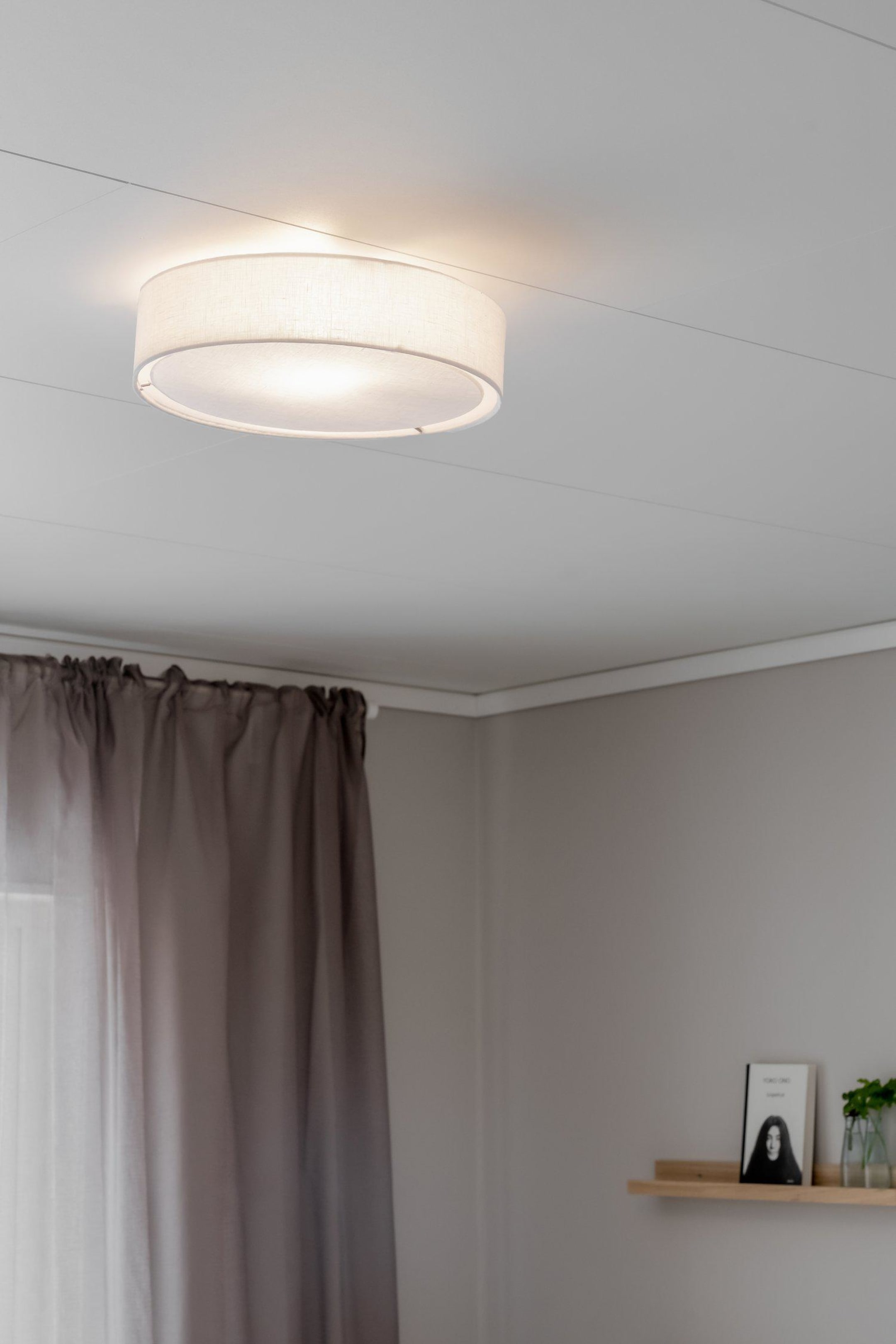 Sam est un magnifique plafonnier au design discret. Il est en métal et présente un abat-jour en lin. 2 x E27. Max 2 x 25 W. Diamètre de 45 cm, hauteur de 12 cm. Montage fixe.