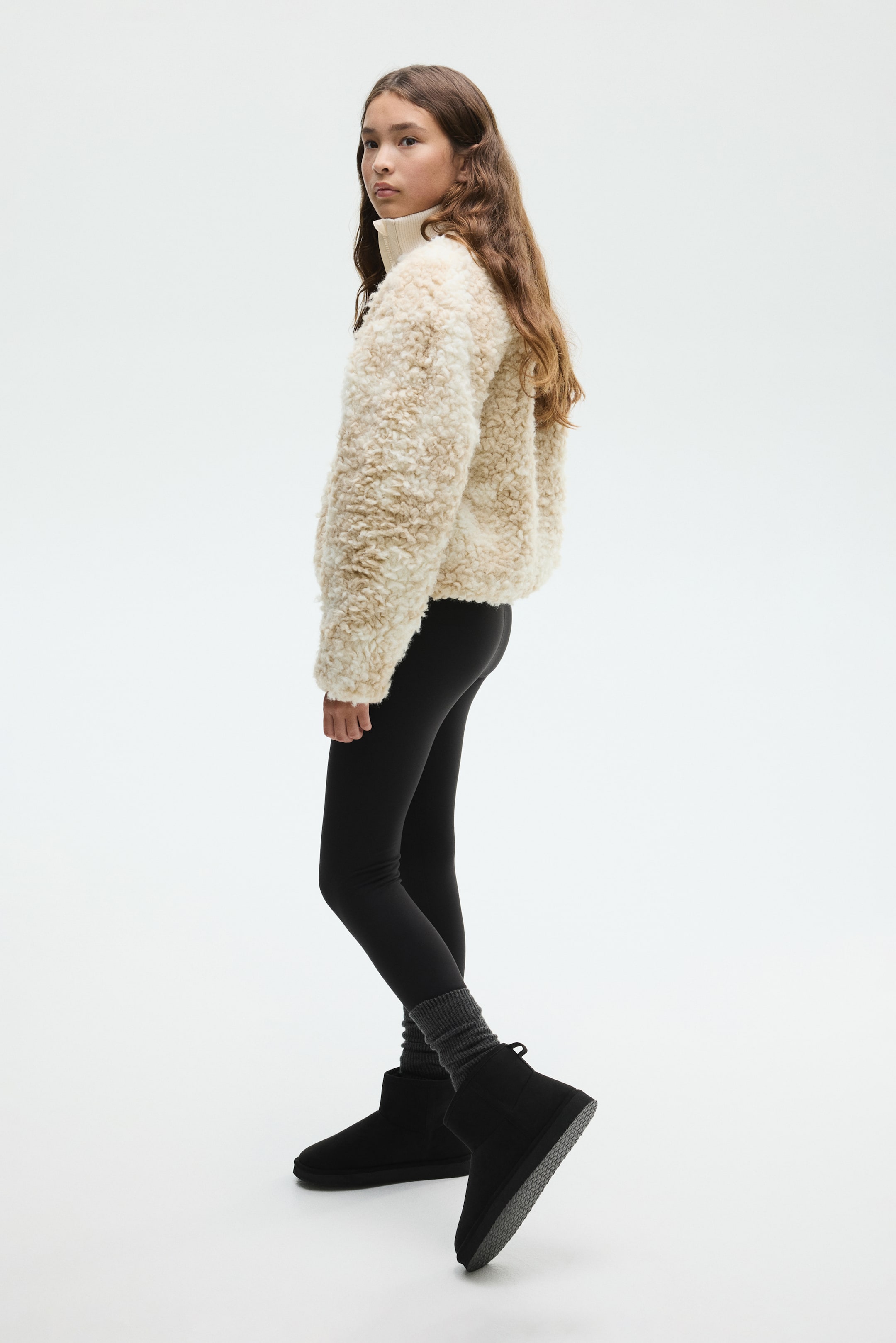 Veste de sport en tissu Teddy bear doux et chaud. Coupe flottante avec col droit côtelé et fermeture à glissière surmontée d'un protège-menton anti-irritations devant. Manches terminées par élastique habillé. Poches chauffe-mains discrètes avec zip. Base resserrable par cordon élastique dissimulé. Doublée.