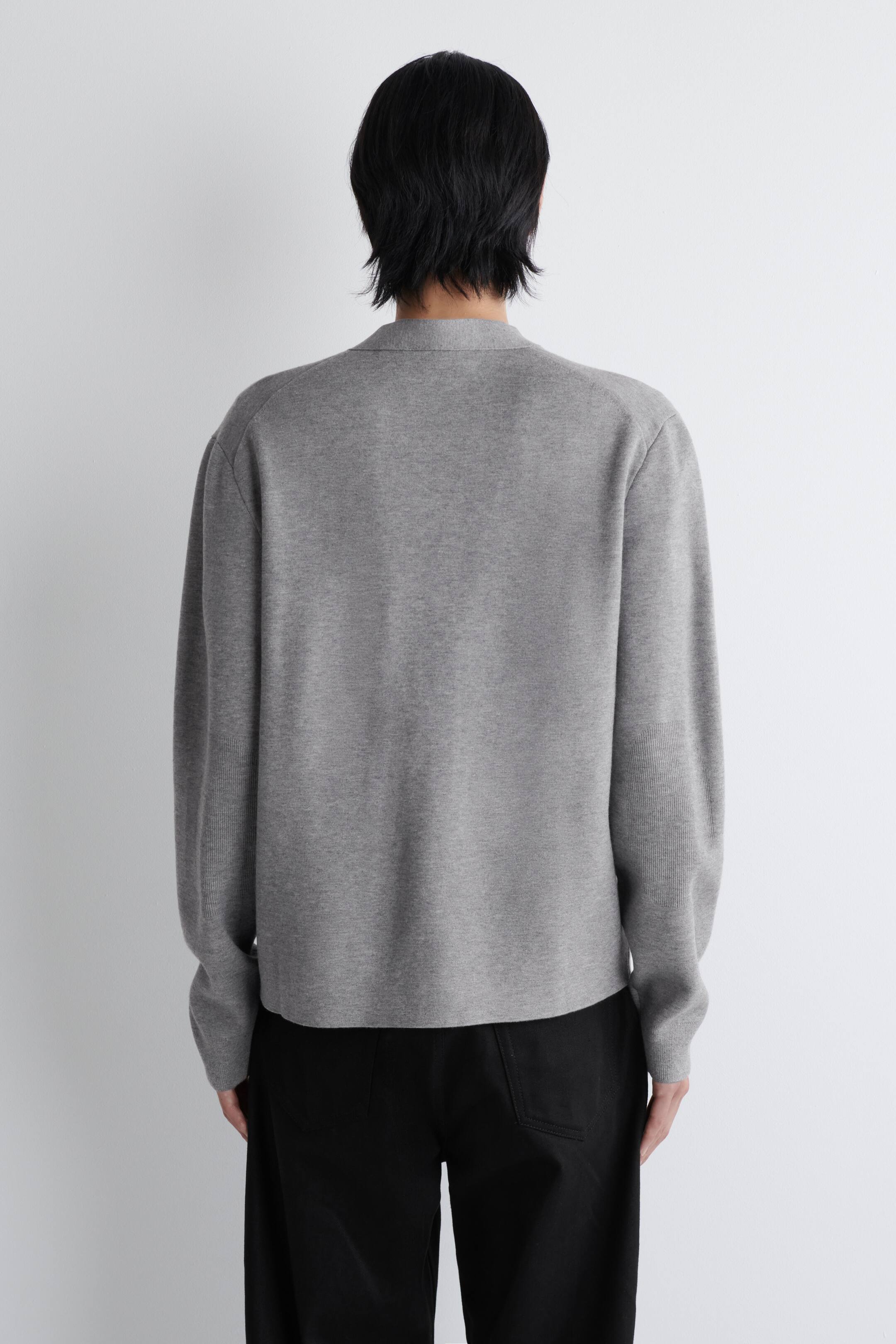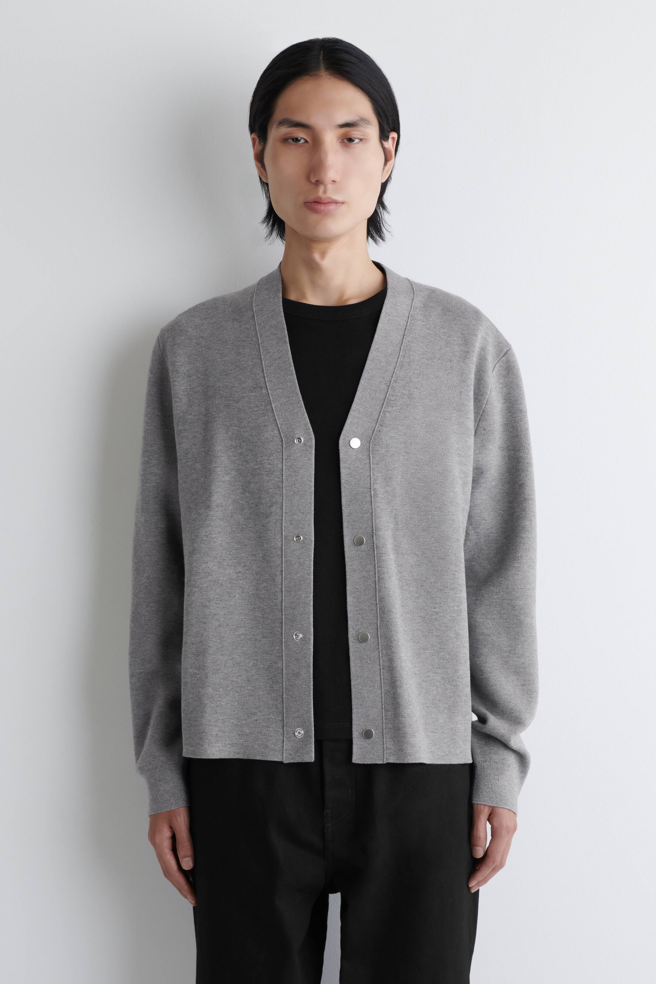 Cette saison, l'équipe de création du prêt-à-porter homme retravaille la maille classique au fil de détails modernes. Ce pull décontracté au col en V contemporain est confectionné dans un tissu double face pour plus de douceur sur l'endroit comme sur l'envers. Coupe décontractée Fermeture à boutons-pression LENZING™ ECOVERO™ est une viscose de marque déposée, fabriquée à partir de pulpe de bois. Matière 1 : 57 % Viscose ECOVERO™, 26 % Polyester recyclé, 17 % Polyamide recyclé (Nylon recyclé). Excluant les finitions / Lavable en machine La longueur du dos en taille M est de 64 cm / Le mannequin porte la taille M