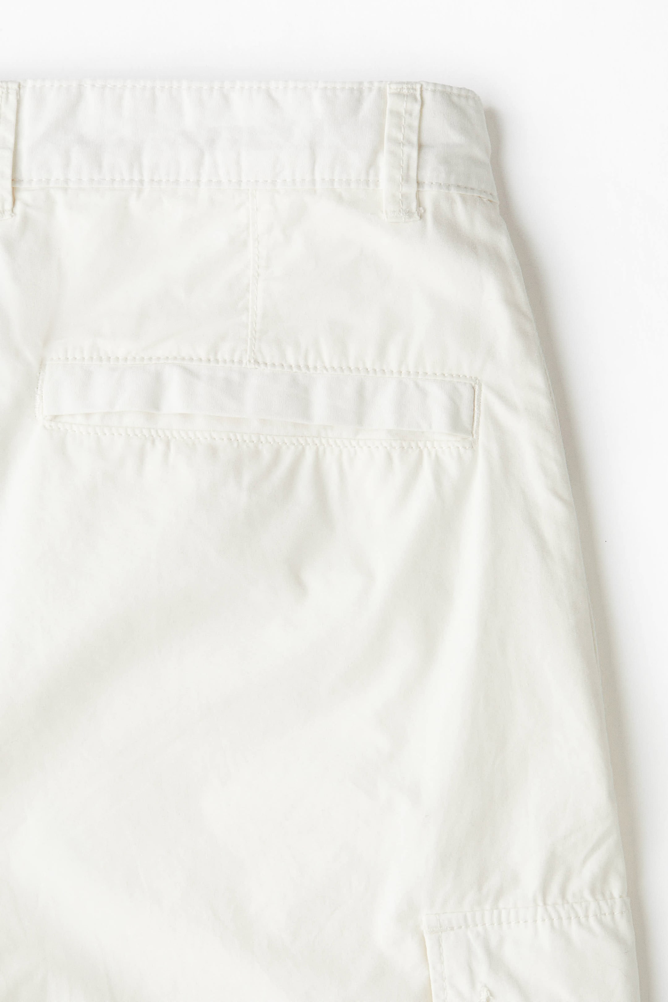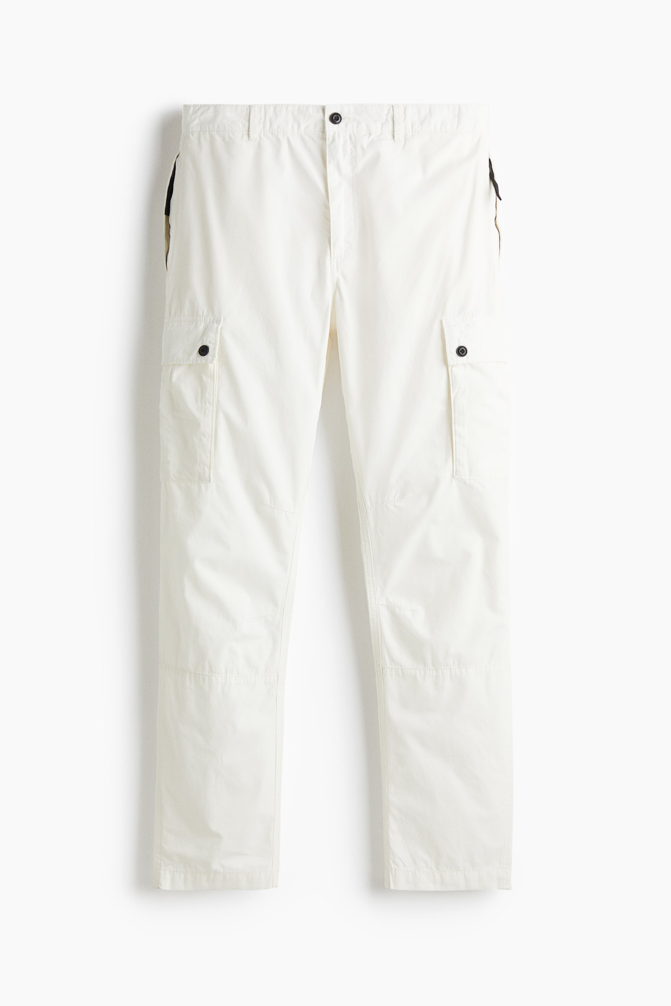 Pantalon cargo en coton tissé. Modèle avec élastique à la taille. Braguette zippée surmontée d'un bouton-pression. Poches latérales zippées, poches à rabat pressionné sur les jambes et poches raglan dans le dos. Coupe regular pour une silhouette classique et un plus grand confort.