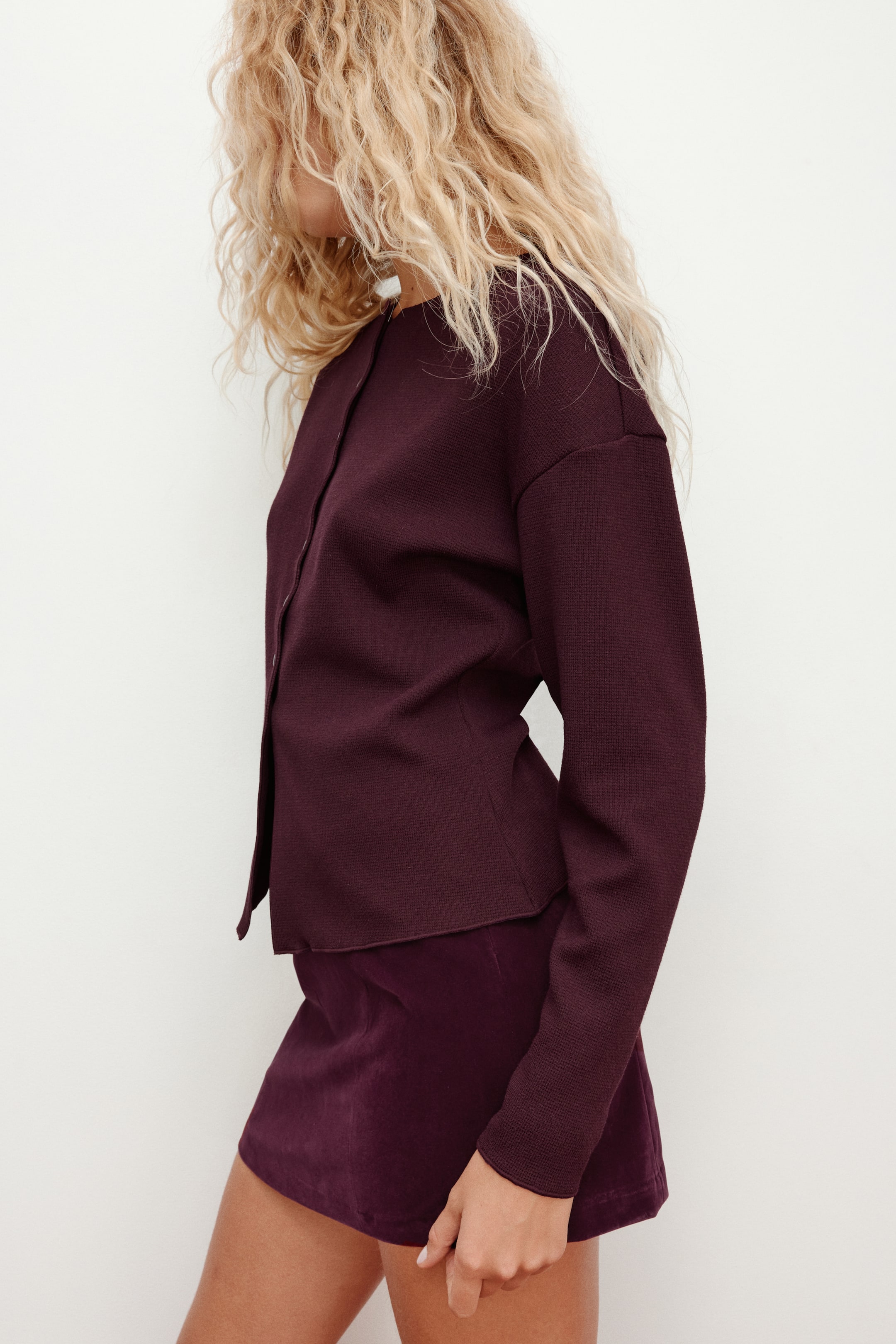 Gilet en maille texturée. Modèle avec encolure ronde, emmanchures descendues et fermeture par boutons-pression devant. Bords nets à la finition surjetée.