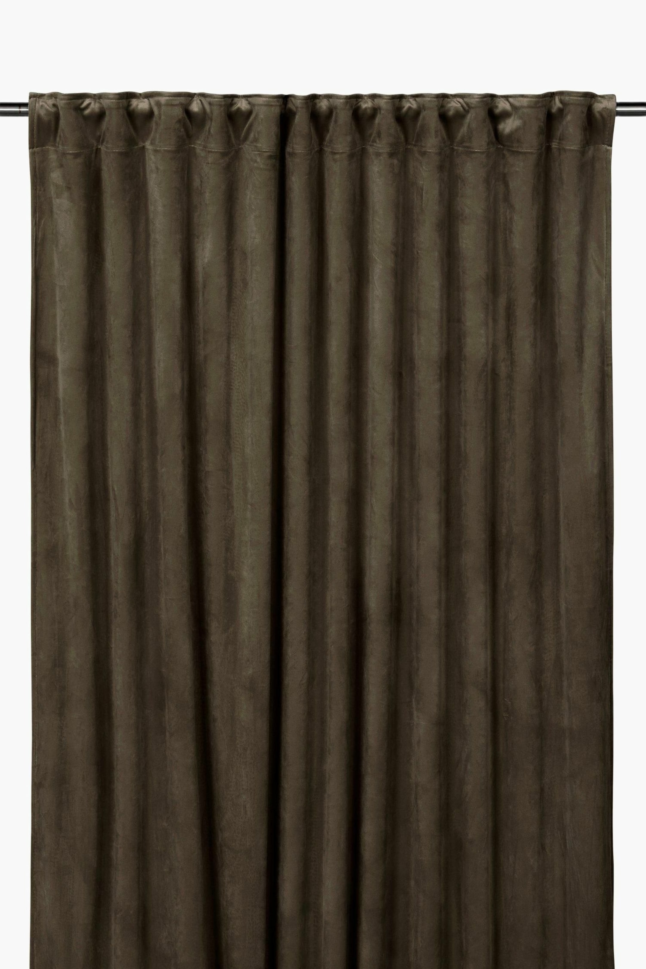 Habillez vos fenêtres avec du velours de qualité supérieure pour un look glamour et subtil. L'épaisseur du tissu offre un léger effet occultant. Les rideaux ont une bande multi-heading en haut, des côtés longs cousus et une couture overlock en bas. La bande multi-heading est une solution flexible qui permet de suspendre les rideaux avec des crochets en métal ou directement sur la tringle en fonction de l'effet de plissage désiré. Utilisez du ruban easy fix pour ajuster la longueur sur mesure sans utiliser de machine à coudre. Les dimensions pour chaque rideau sont de 135x280 cm mais gardez à l'esprit que le rétrécissement peut atteindre jusqu'à 2% après le lavage.