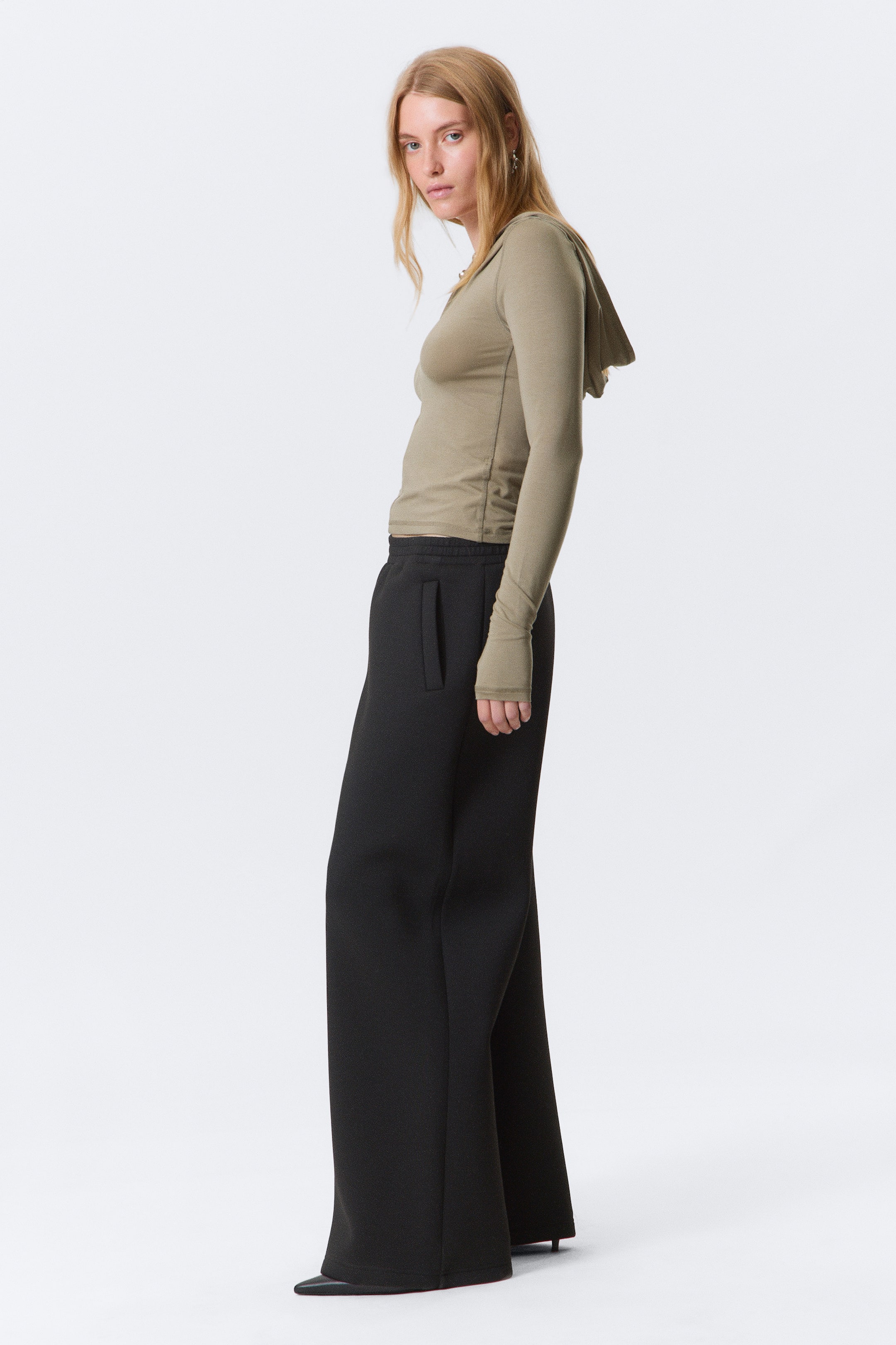 Pantalon de jogging à jambes fuselées avec une silhouette épurée et structurée. Confectionné dans du jersey scuba doux, il possède une taille taille moyenne avec un élastique dissimulé pour un enfilage facile. Il possède des poches passepoilées simples et des plis marqués pour une finition élégante. Il est doté de détails surpiqués subtils et d’une doublure intérieure lisse.