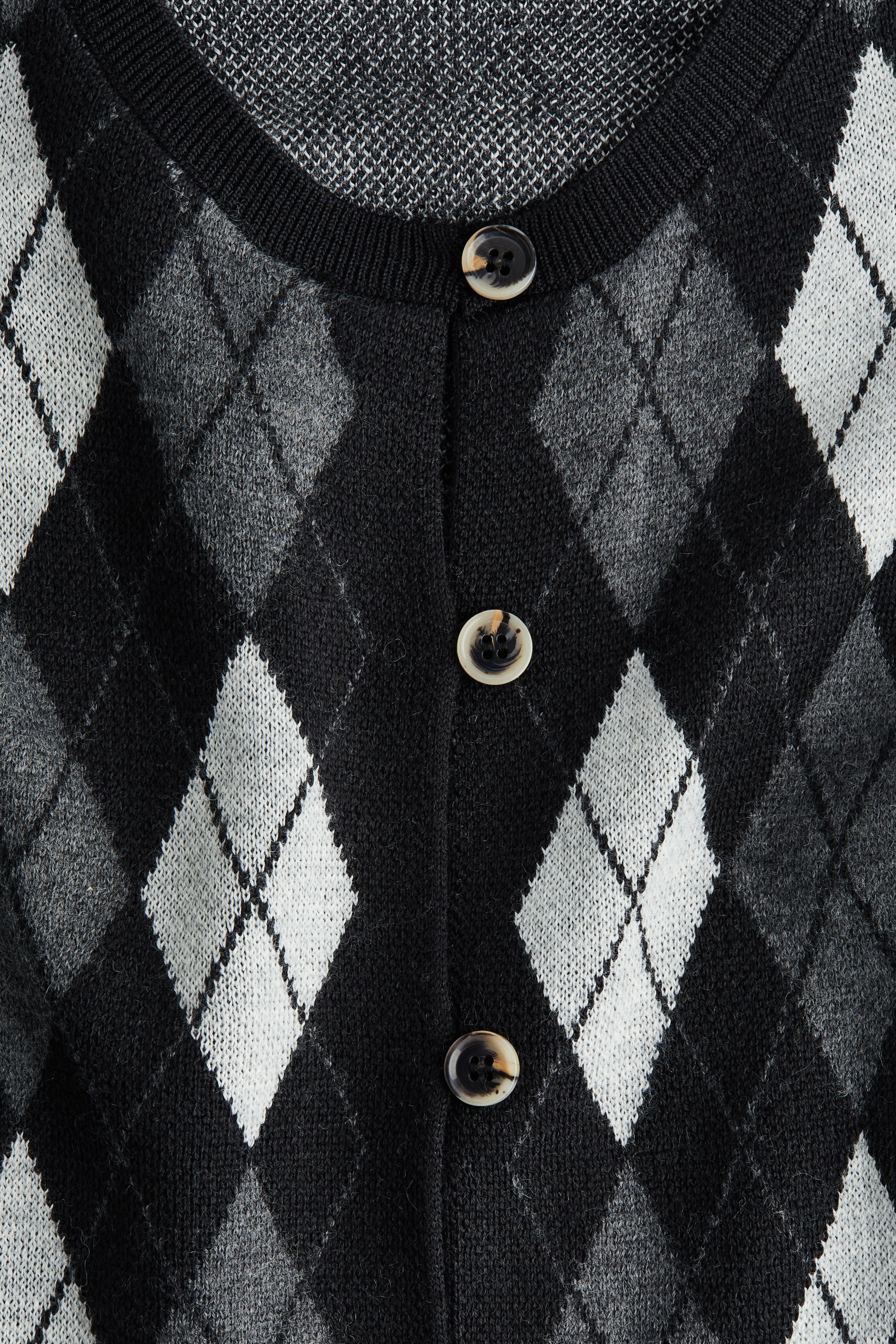 Gilet sans manches en maille jacquard de laine mélangée. Modèle avec encolure ronde et boutonnage devant. Finition côtelée à l’encolure et à la base.