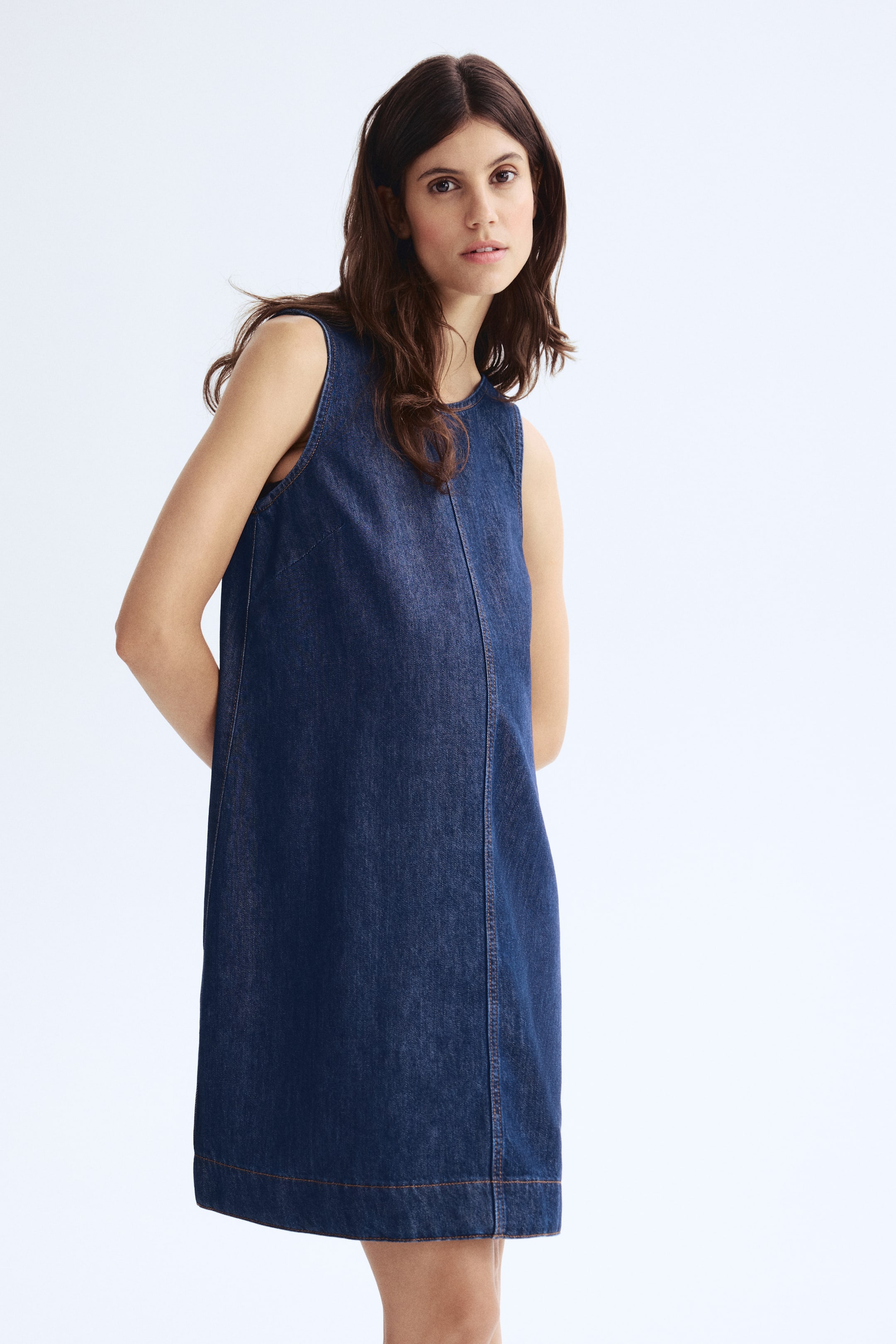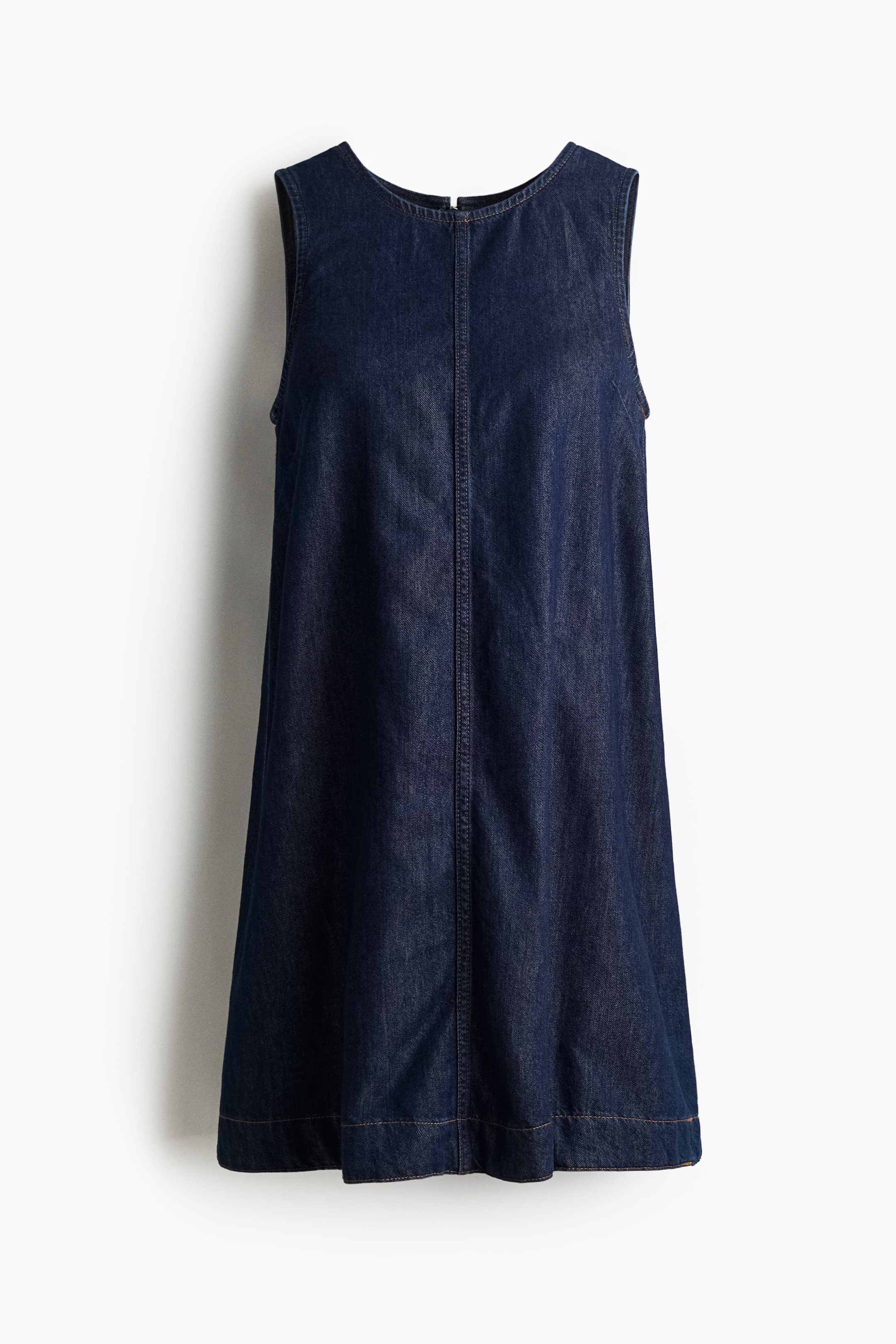 Rövid, A-vonalú, ujjatlan twillruha kerek nyakkal, hátul cipzárral. A várandósság alatt és után egyaránt viselhető.