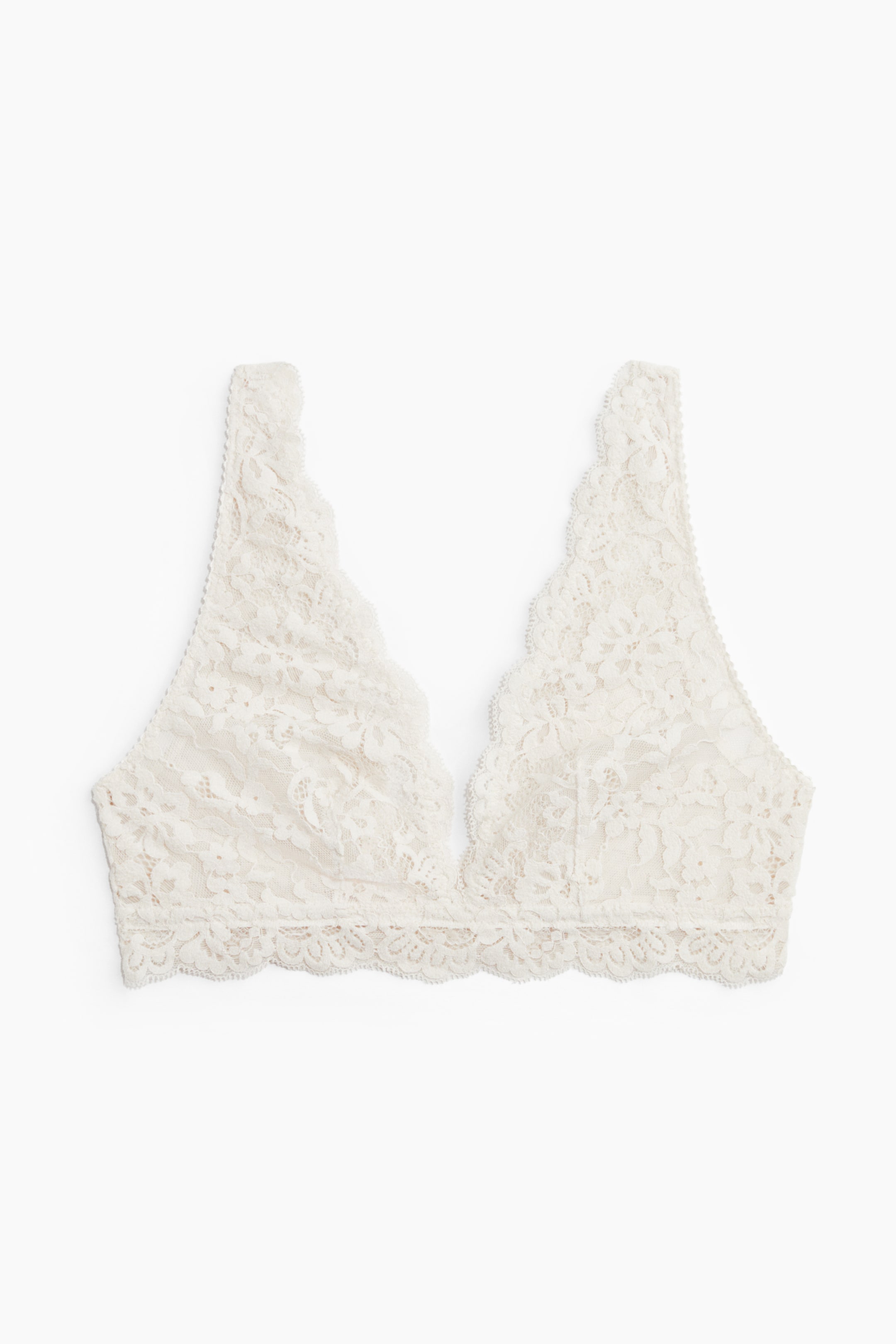Csipkebralette elöl-hátul mély V-nyakkal, cakkos szegővel, a keblet természetes módon formázó és enyhén támasztó, béleletlen kosárral, horogkapcsos hátpánttal.