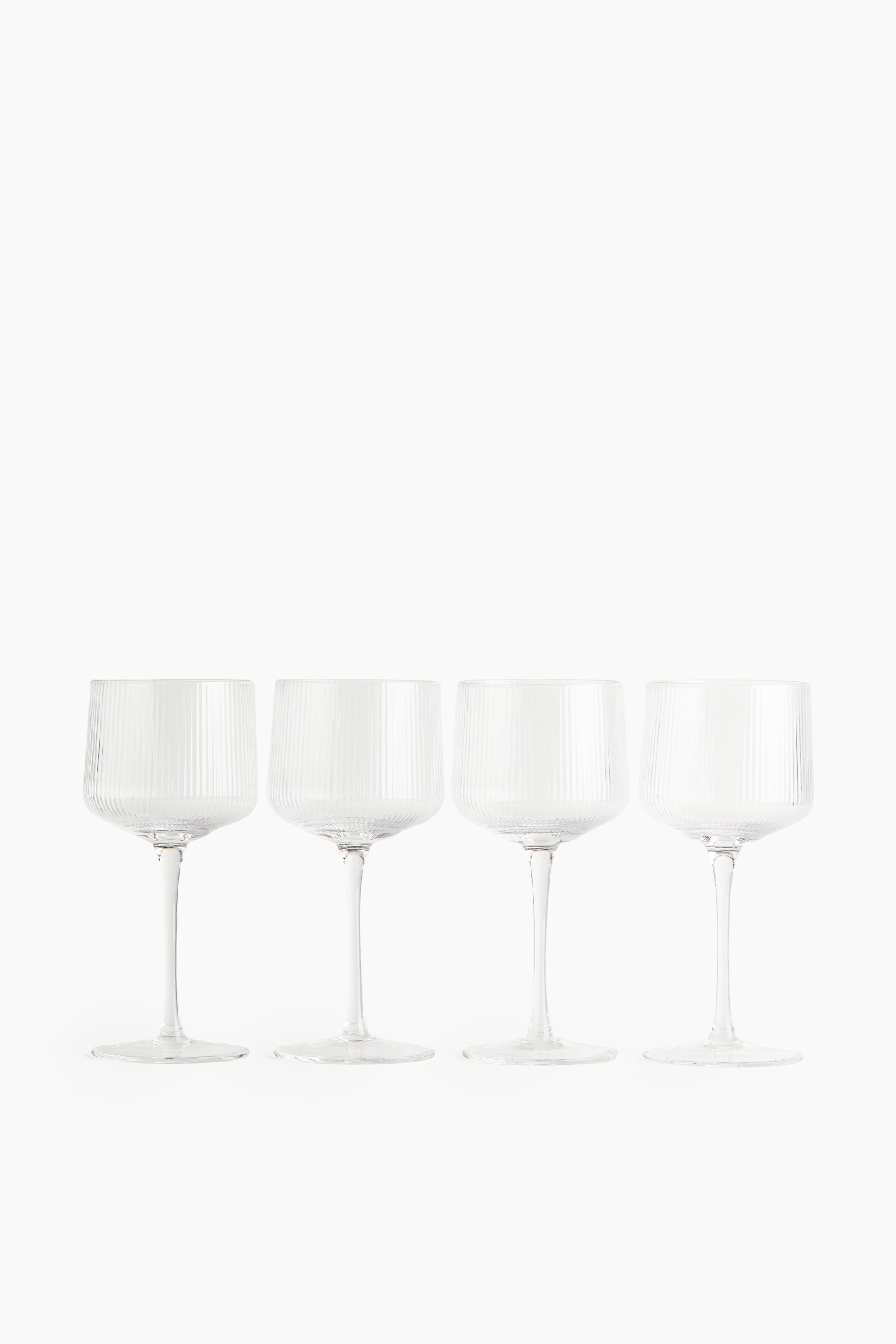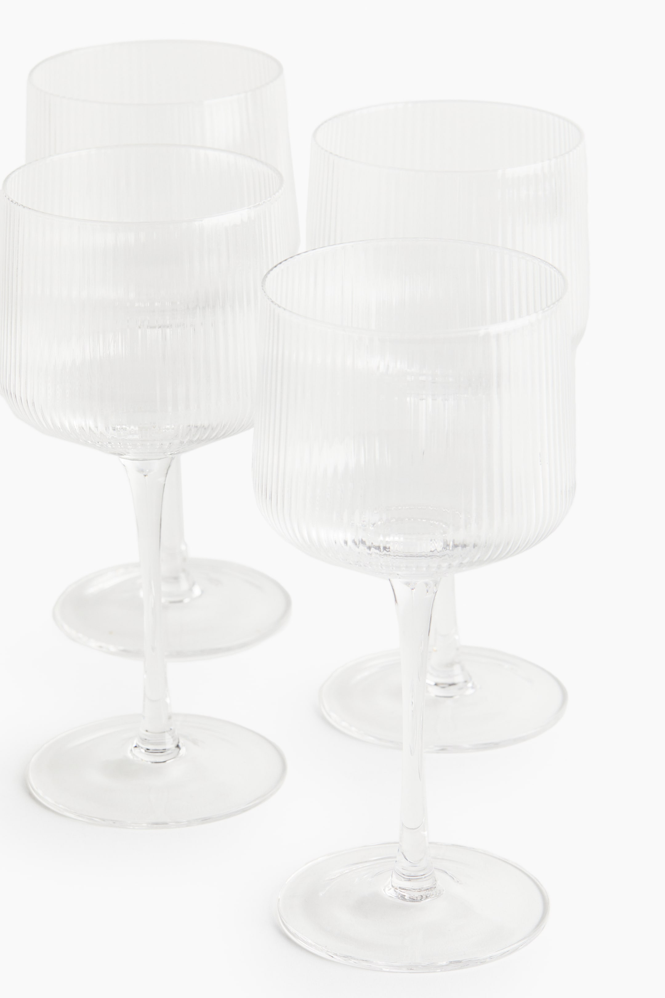 Négy elegáns, recés, szájjal fújt borospohár. Űrtartalmuk 300 ml.