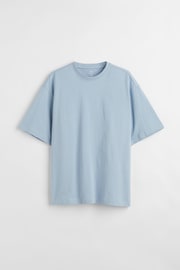 טישירט מג'רזי כותנה עבה עם צווארון ריב עגול, כתפיים נמוכות ושוליים ישרים. גזרה משוחררת לצללית רחבה שאינה אוברסייז.