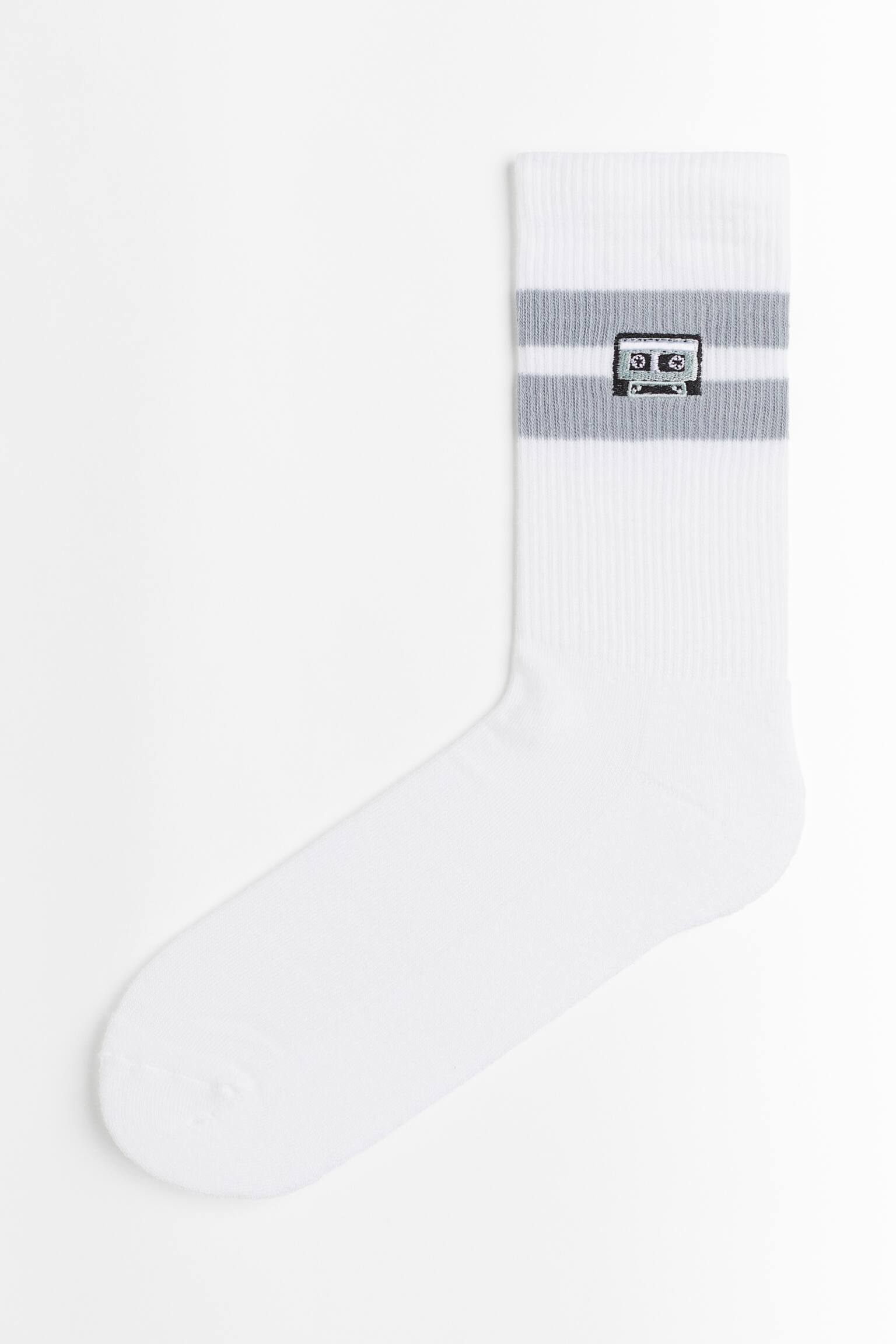 גרביים עד אמצע השוק מסריג ריב רך עשוי תערובת כותנה עם גומי בחלק העליון.