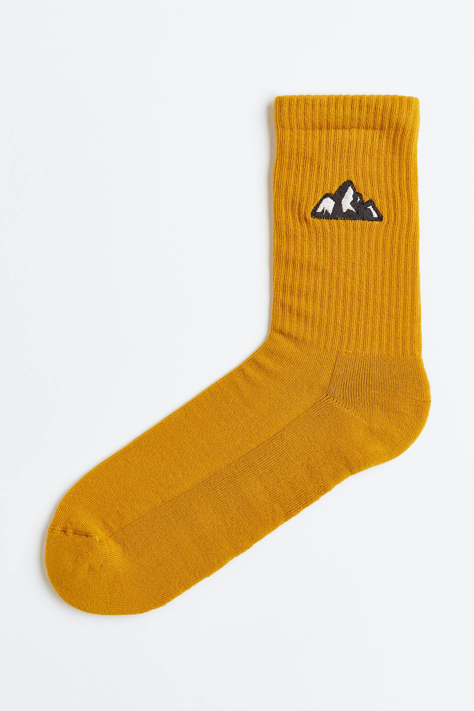גרביים עד אמצע השוק מסריג ריב רך עשוי תערובת כותנה עם גומי בחלק העליון.