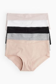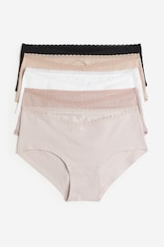 תחתוני היפסטר מג'רזי כותנה עם סיומת תחרה בחלק העליון, כיסוי מלא בצדדים, שכבת בד כפולה במפשעה וכיסוי חלקי מאחור.