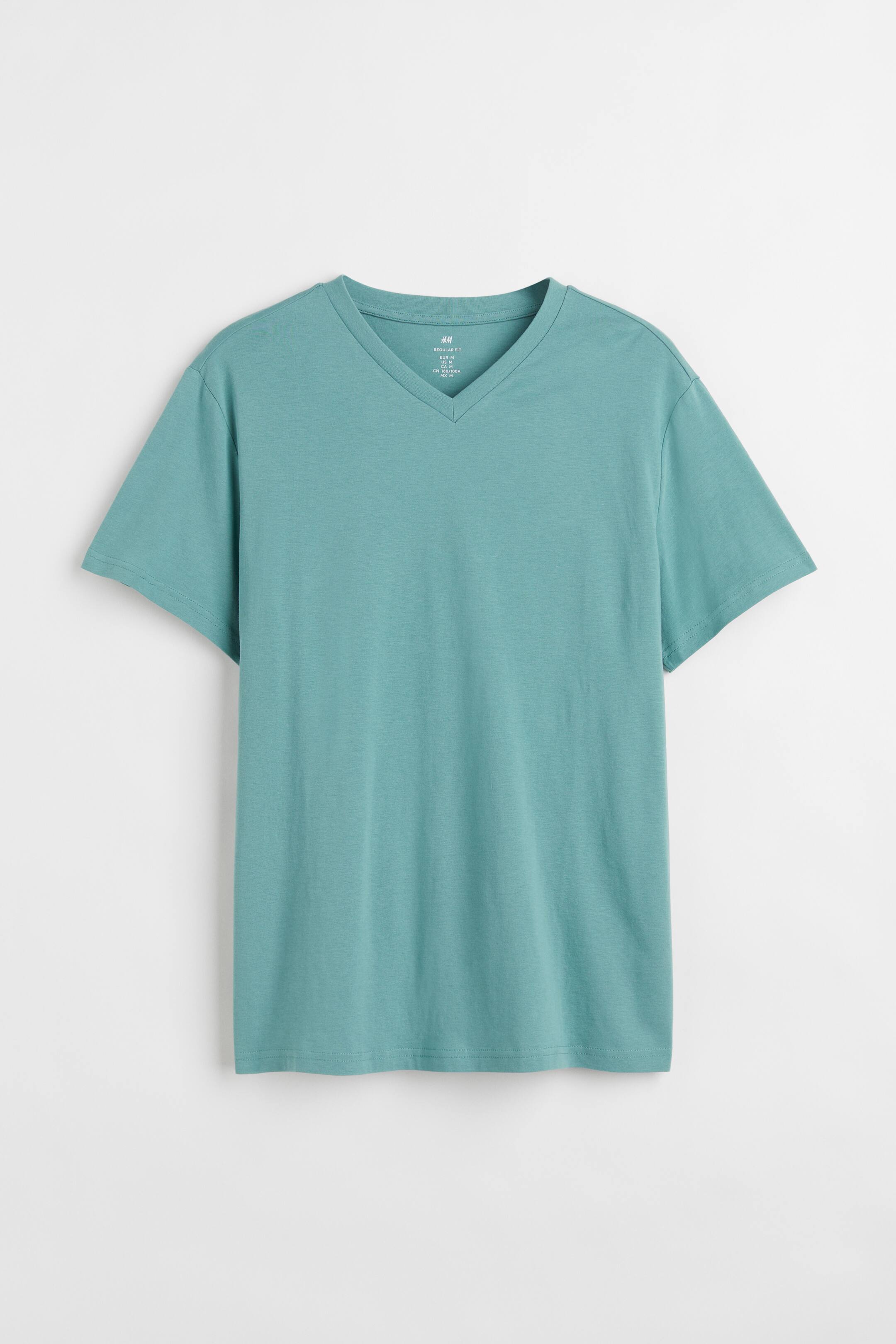 טישירט מג'רזי כותנה דק עם צווארון וי ושוליים ישרים. גזרה קלאסית ללבוש נוח ולצללית על-זמנית.