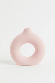 אגרטל קרמיקה עגול. קוטר 20 ס"מ, גובה כולל 21 ס"מ, קוטר הפתח 3.5 ס"מ.