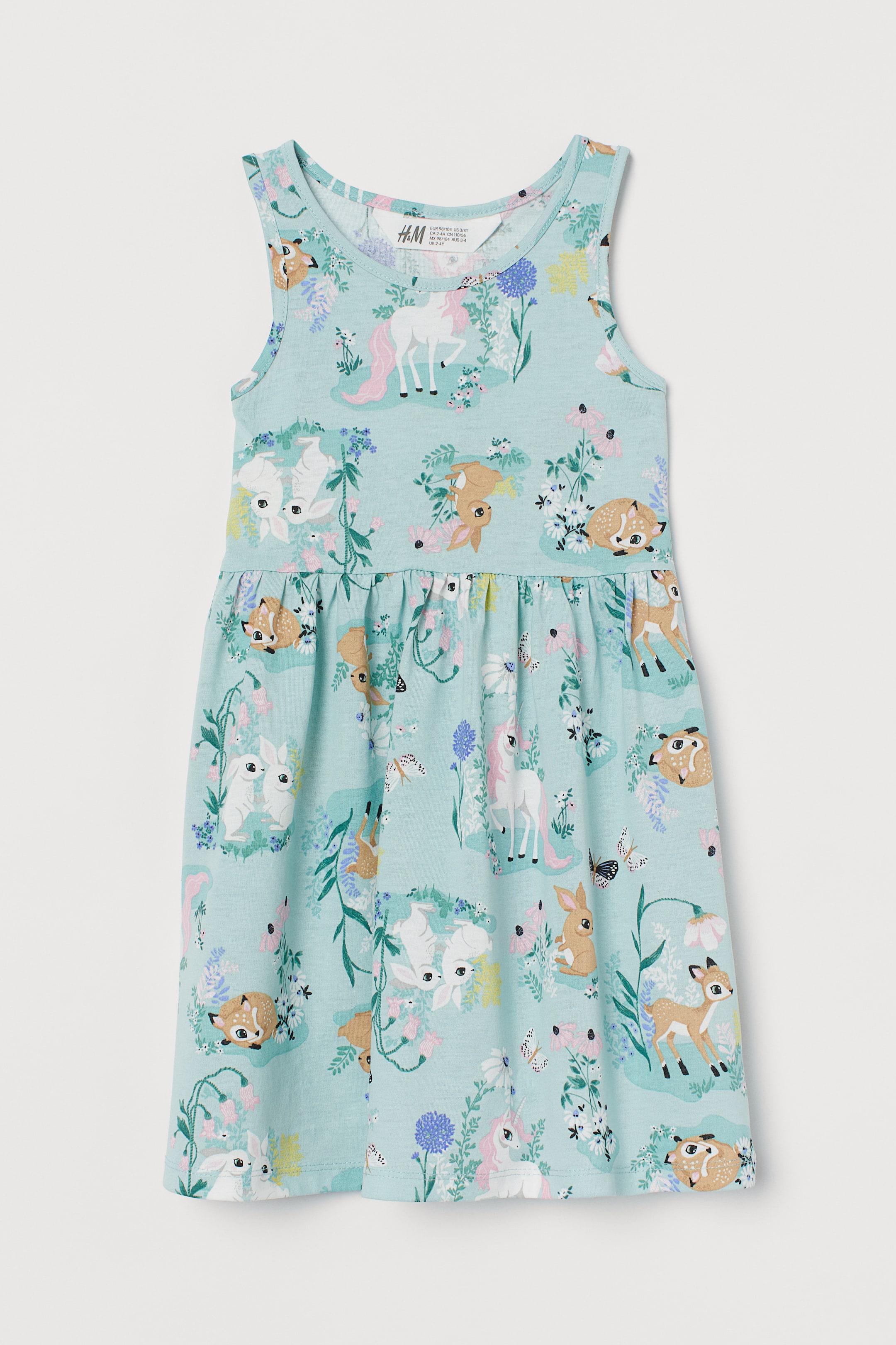 - Light turquoise/Light pink/Pink/White/Yellow/Light grey/Brown, עם דוגמה, Rabbits, unicorns, deer, butterflies, flowers, leaves