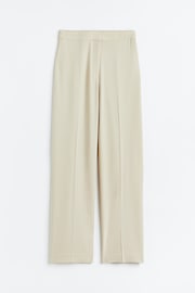 מכנסי אריג עם מותן גבוה, רכיסת קרס נסתרת ורוכסן ורגל רחבה וישרה עם קפל.