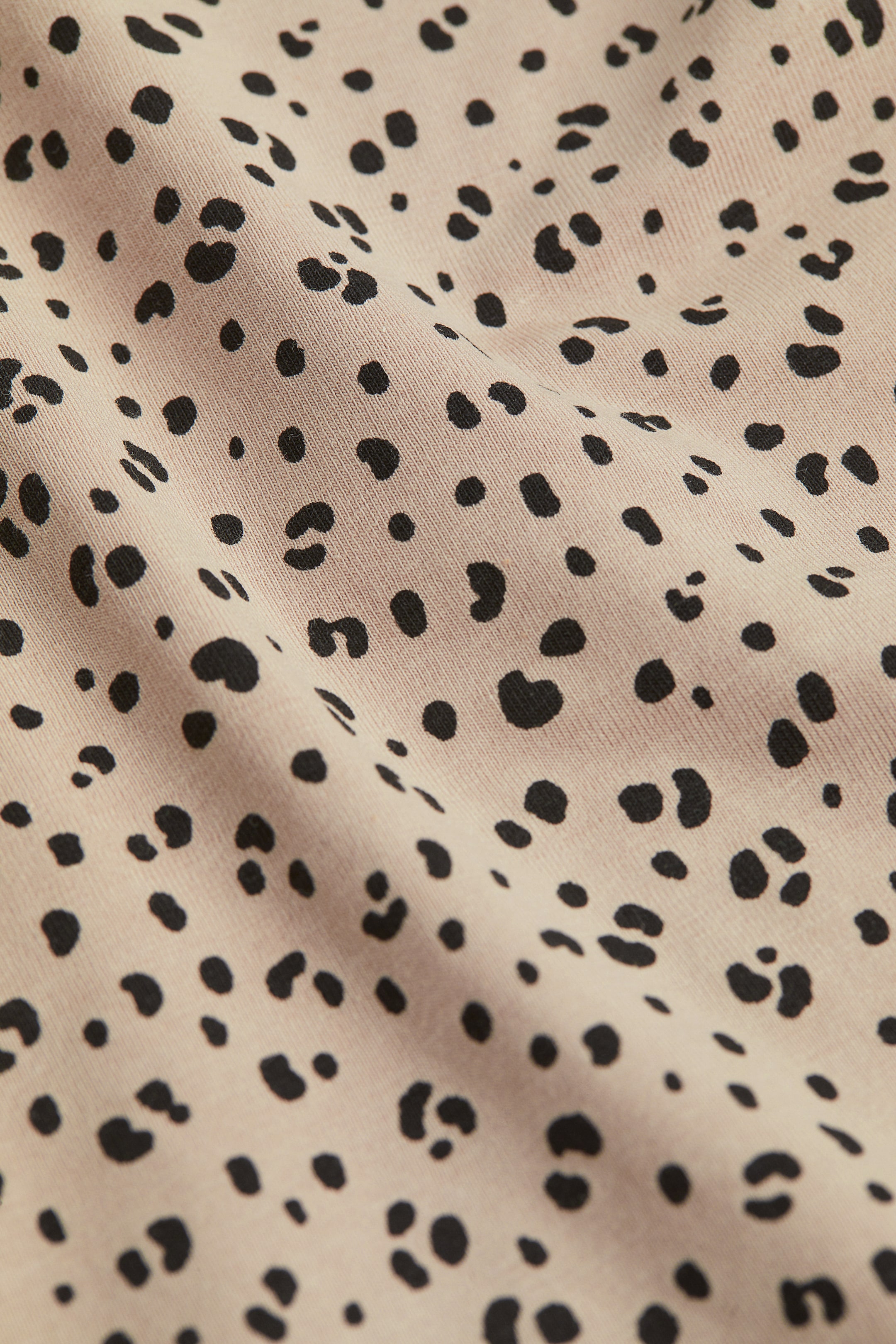 חולצה מג'רזי כותנה רך עם שרוולים ארוכים, צווארון עגול ושוליים מעוגלים קלות.