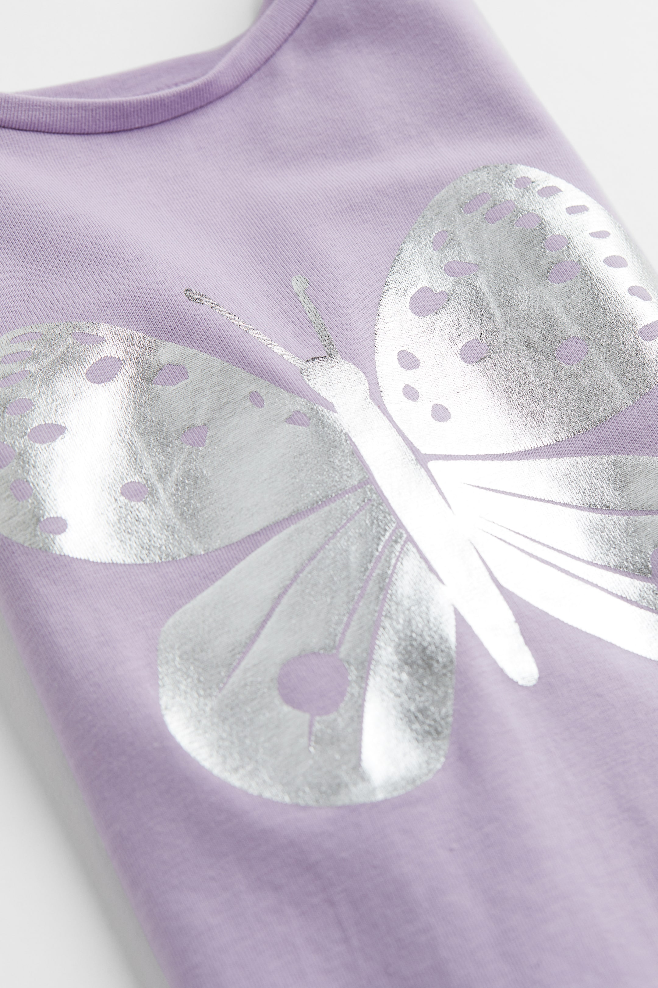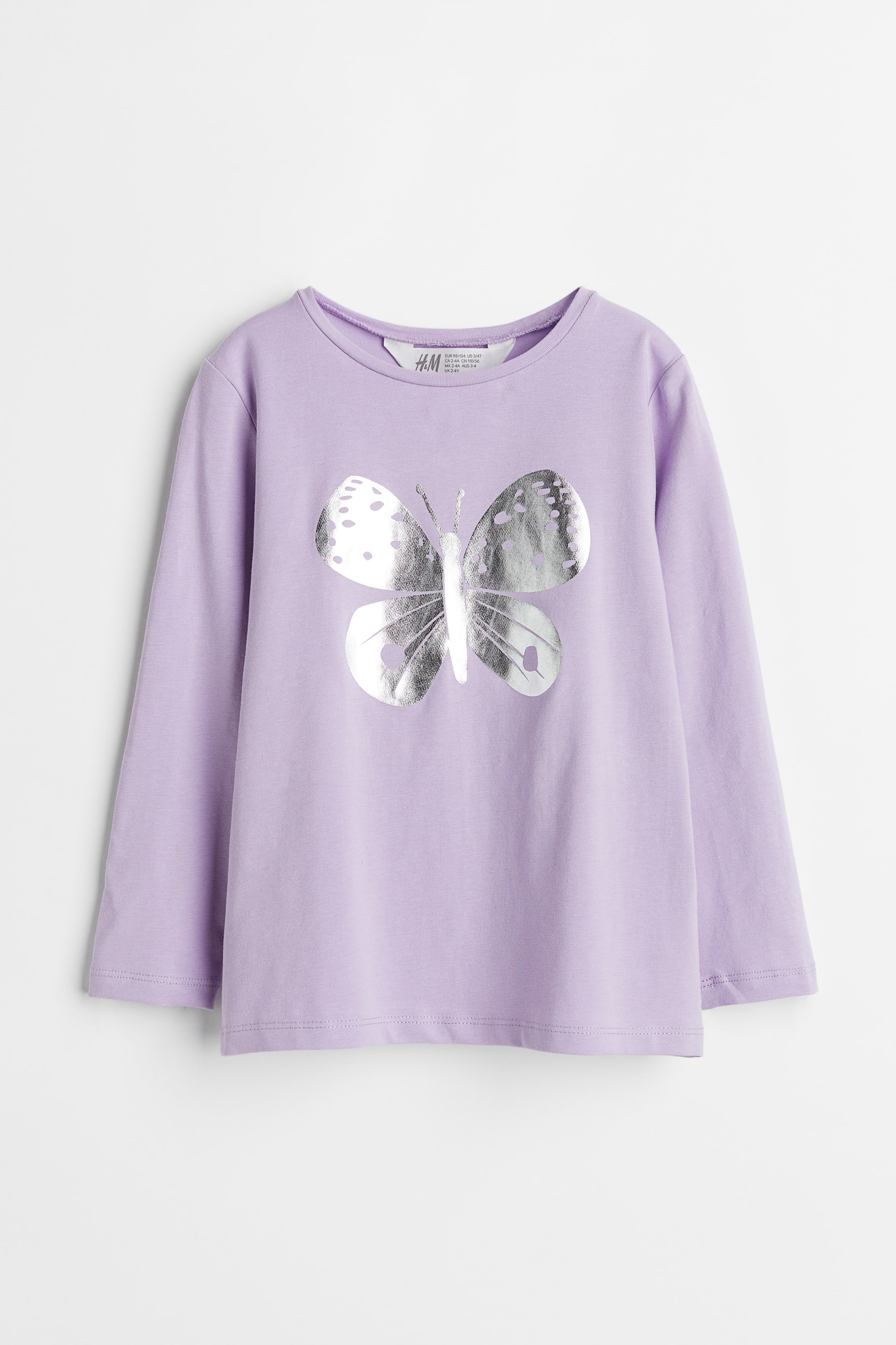 חולצה מג'רזי כותנה רך עם שרוולים ארוכים, צווארון עגול ושוליים מעוגלים קלות.