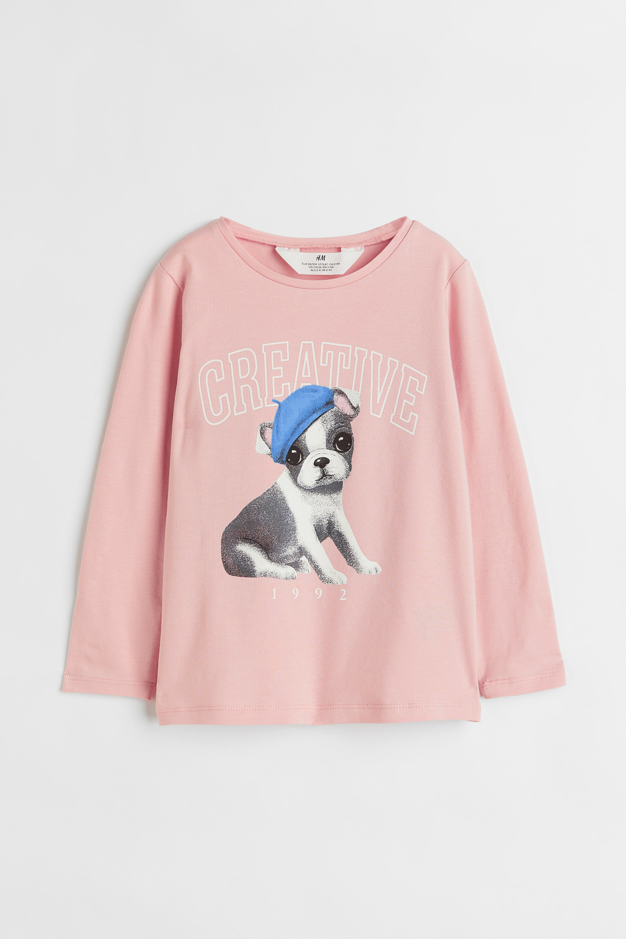 חולצה מג'רזי כותנה רך עם שרוולים ארוכים, צווארון עגול ושוליים מעוגלים קלות.