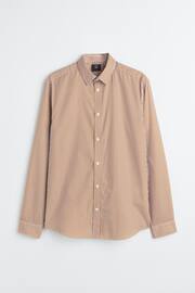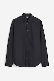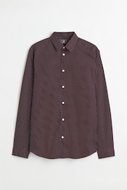 חולצה בגזרה צרה מאריג עם גימור לגיהוץ קל. צווארון מקופל, כפתורים בחזית ופנסים בגב. שרוולים ארוכים עם רכיסת כפתורים מתכווננת. שוליים מעוגלים קלות.