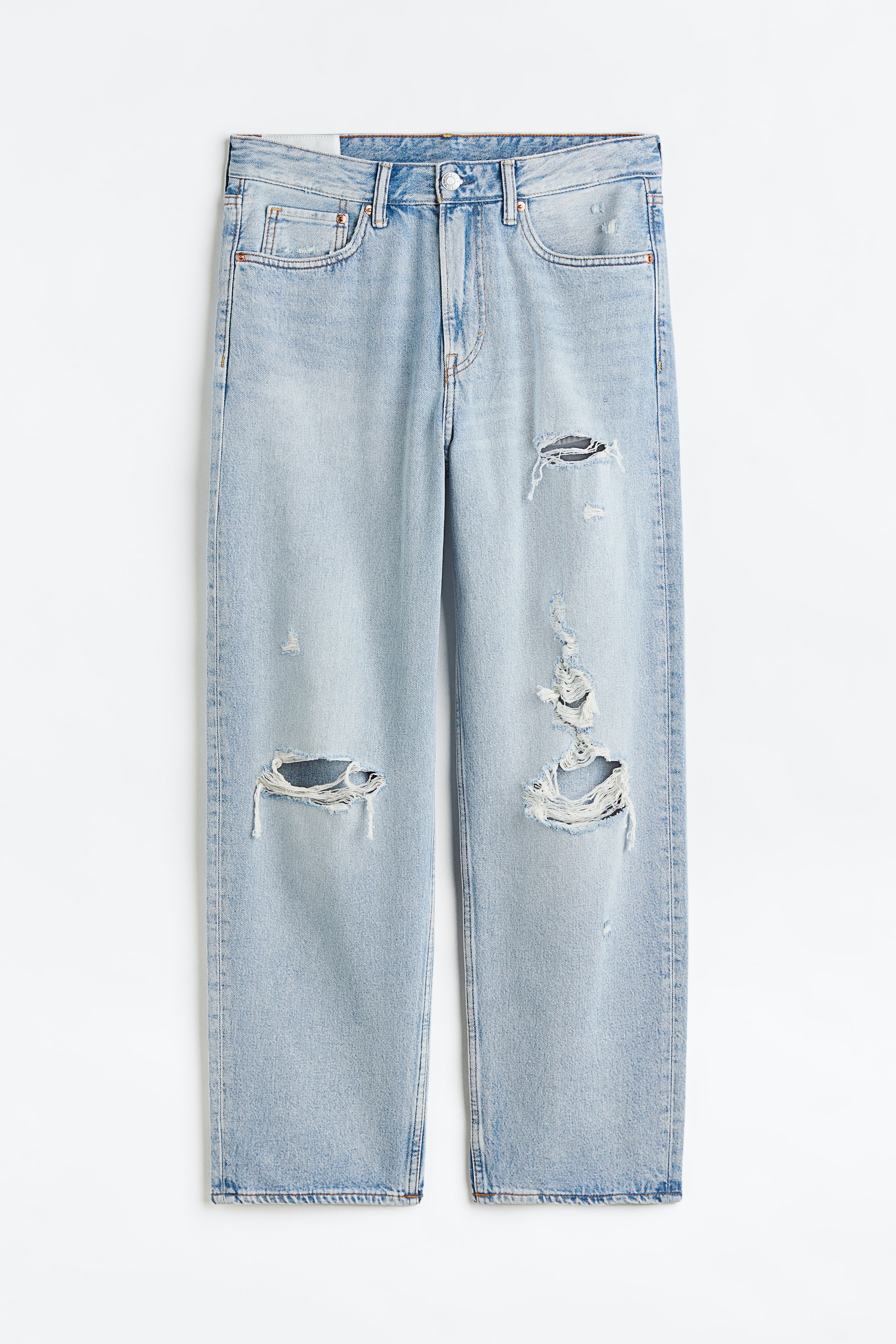 מכנסיים מג'ינס כותנה קשיח עם 5 כיסים, רגל מעוגלת וגזרה משוחררת עם מפשעה נמוכה לתחושה מרווחת לכל אורך הרגל. מותן רגיל עם רכיסה ברוכסן. כל מה שצריך להשגת מראה הג'ינס השלם.