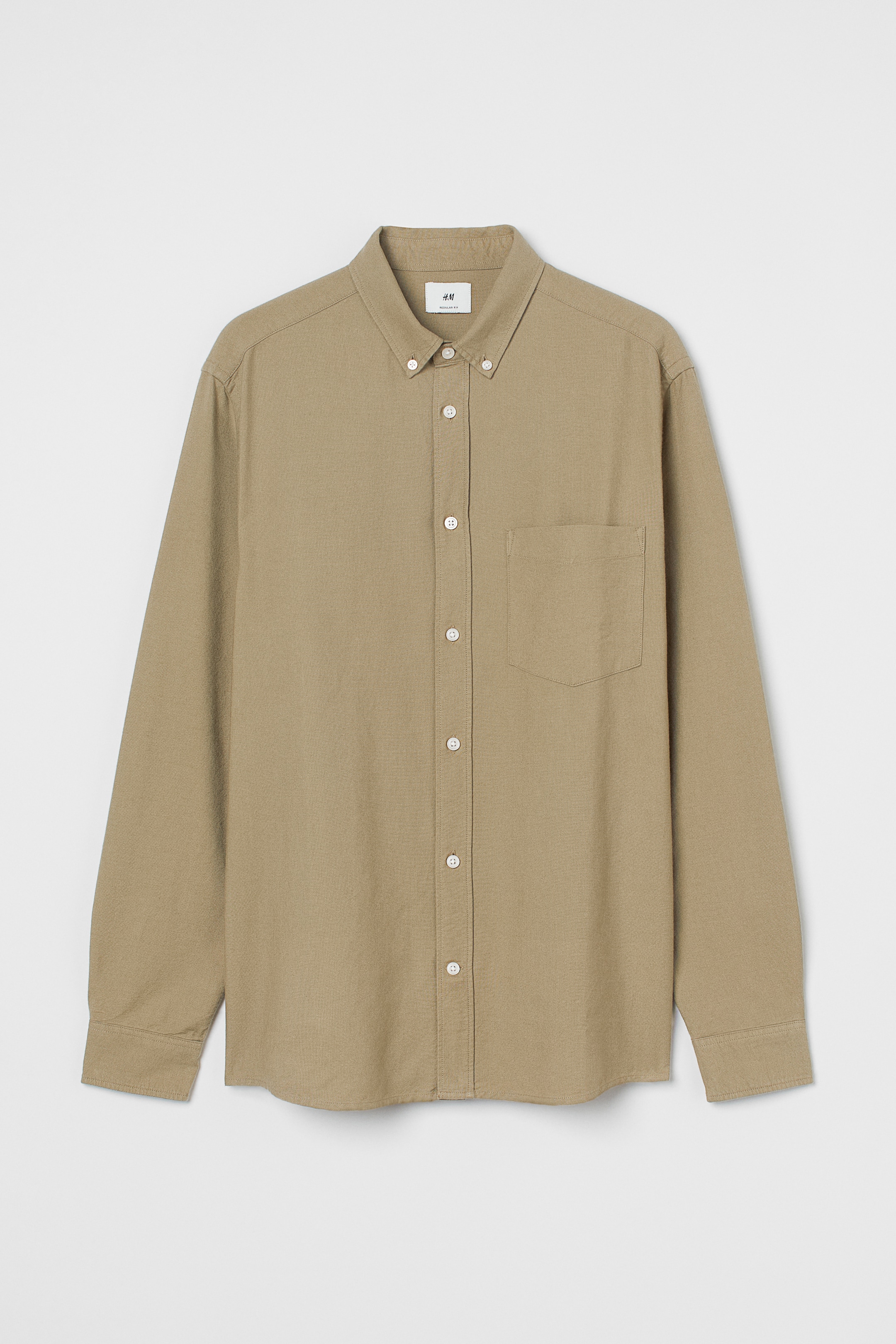 חולצה בגזרה קלאסית מכותנת אוקספורד עם צווארון עם כפתורים, חזית קלאסית וכיס פתוח בחזה. שרוולים ארוכים עם כפתורים בחפתים. שוליים מעוגלים קלות.