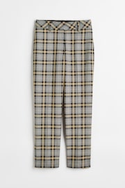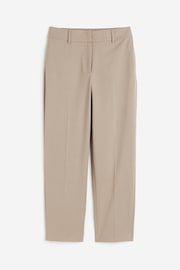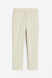 מכנסי סיגר מאריג. מותן רגיל עם גומי נסתר ורכיסה בקרס ורוכסן. כיסים בצדדים, כיסים אחוריים מדומים ורגל עם הצרה וקפלים.