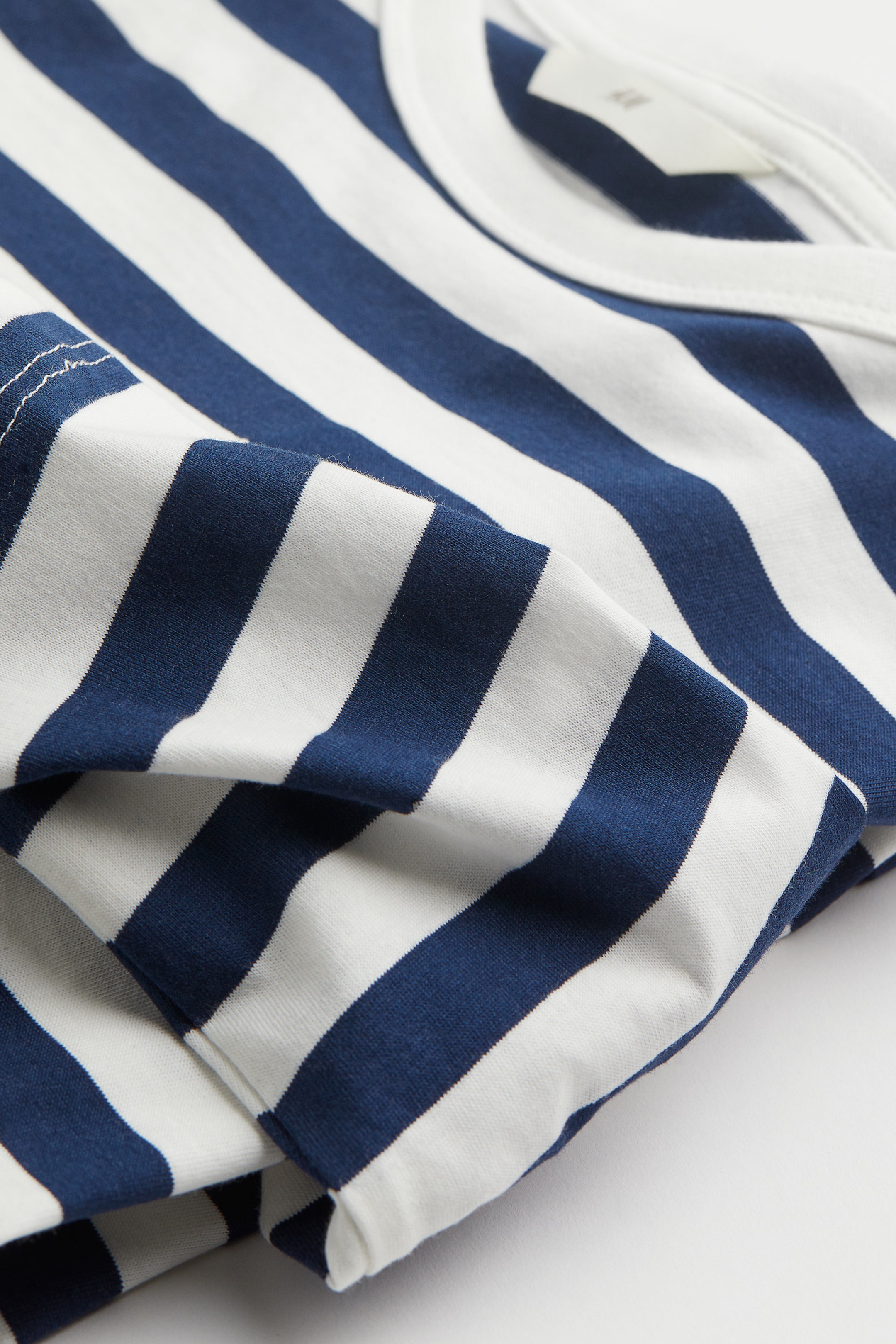 חולצה מג'רזי כותנה רך עם שרוולים ארוכים, צווארון עגול בסיומת פס ושוליים ישרים.