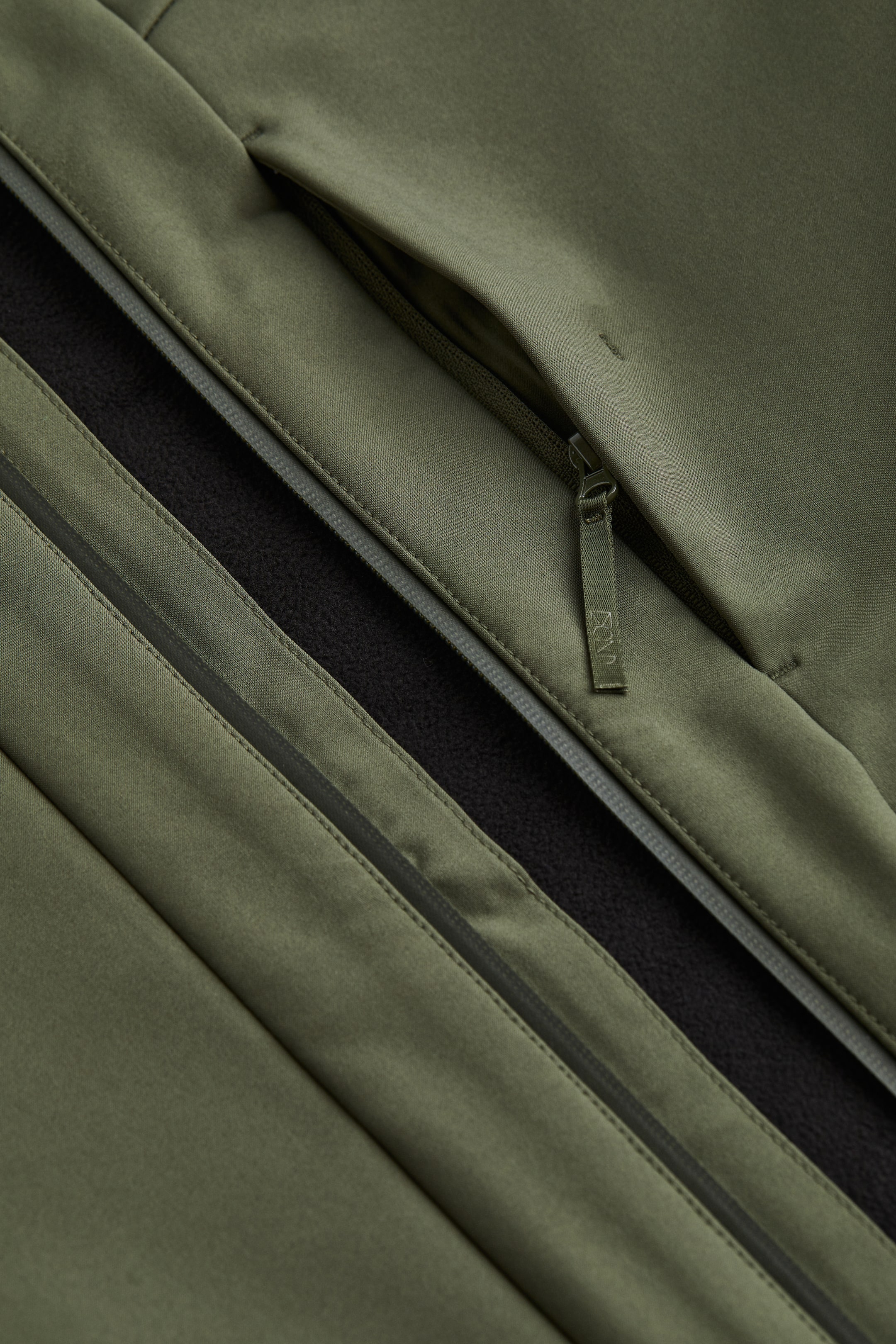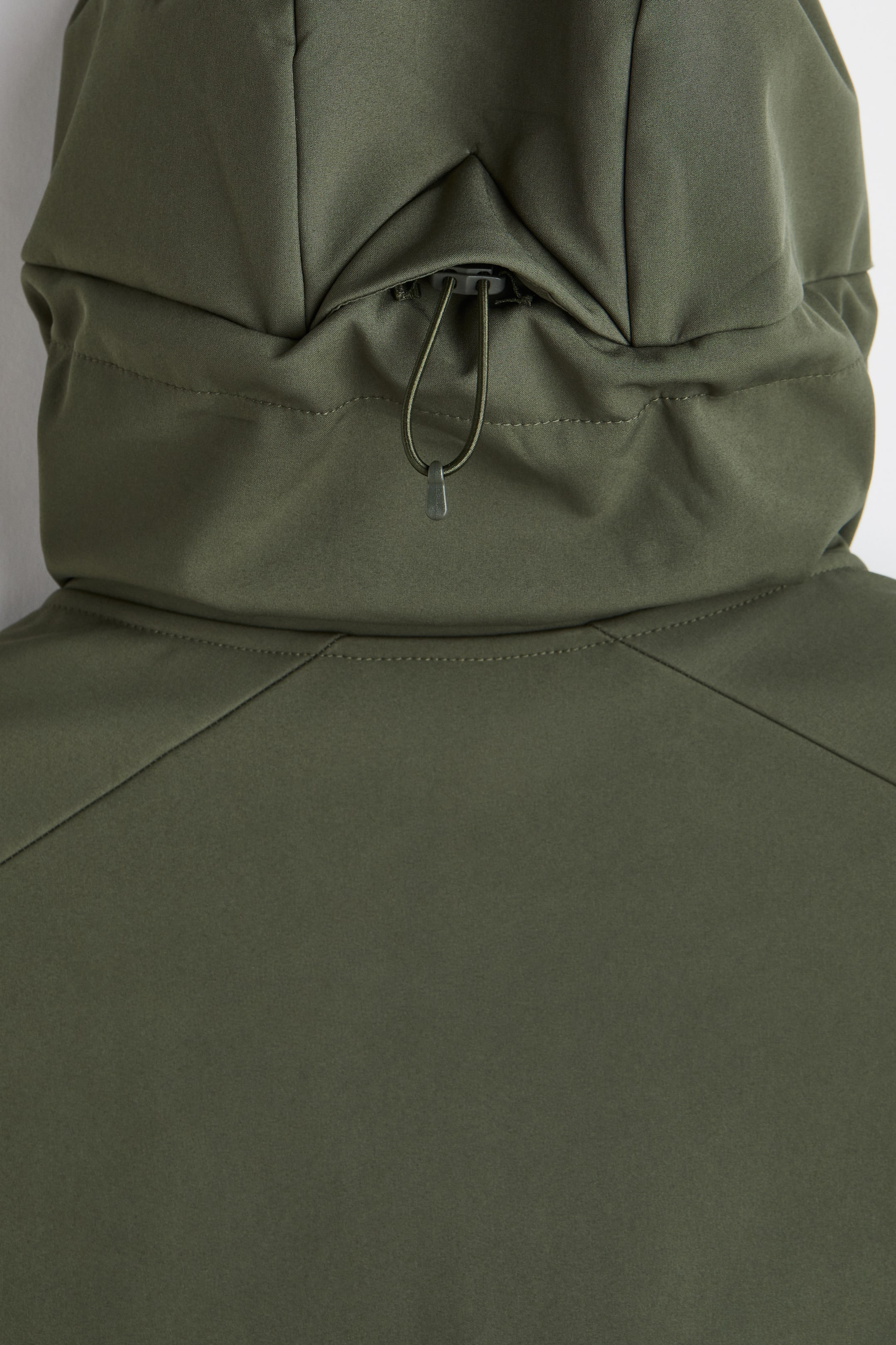 ז'קט סופטשל מבד פונקציונלי חסין רוח ודוחה מים עם רמת אטימות למים של 20,000 מ"מ. ברדס עם מצחייה קטנה ושרוך גומי נסתר בחזית מאחור להתאמה מיטבית לראש. צווארון עומד ורוכסן בחזית עם מגן לסנטר. כתפיים נמוכות מעט, שרוולים ארוכים ורצועת סקוץ' בחפתים. כיס בחזה עם רוכסן נסתר וכיסים קדמיים סגורים עם רוכסן. עם בטנת רשת חלקית.