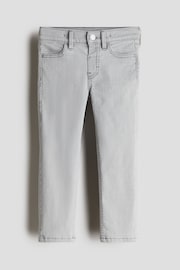 מכנסיים מג'ינס סופר-סטרץ' משופשף לתנועתיות מרבית. גזרה צרה עם גומי מתכוונן במותן, רוכסן מדומה וכפתור וכיסים קדמיים ואחוריים.