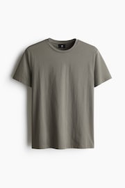 חולצת טי בגזרה צרה מג'רזי רך עשוי כותנת פימה. צווארון עגול עם פס ריב עדין ושוליים ישרים.