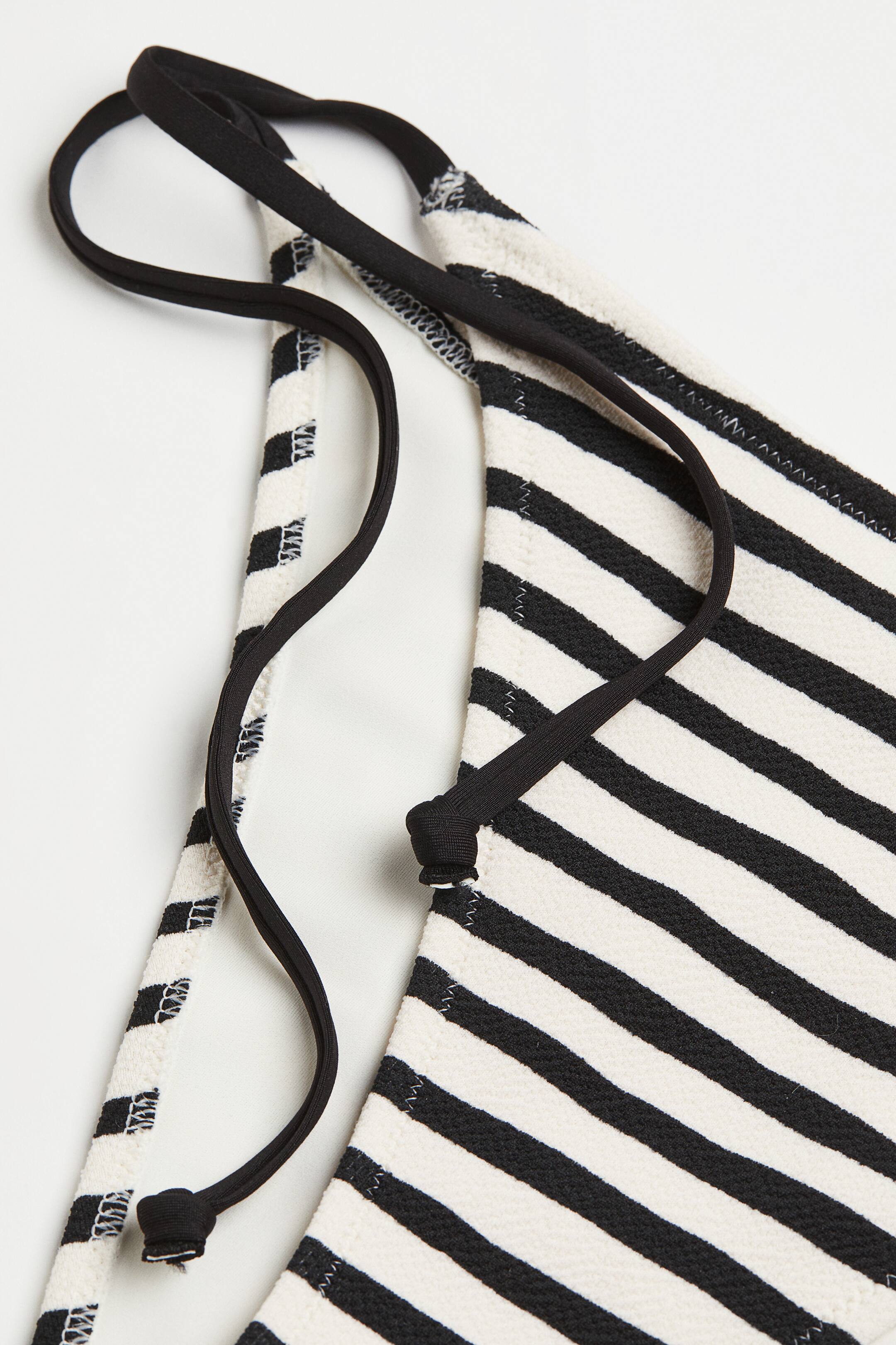 תחתוני ביקיני עם בטנה מלאה ומותן בינוני, שרוכי קשירה בצדדים וכיסוי חלקי מאחור.