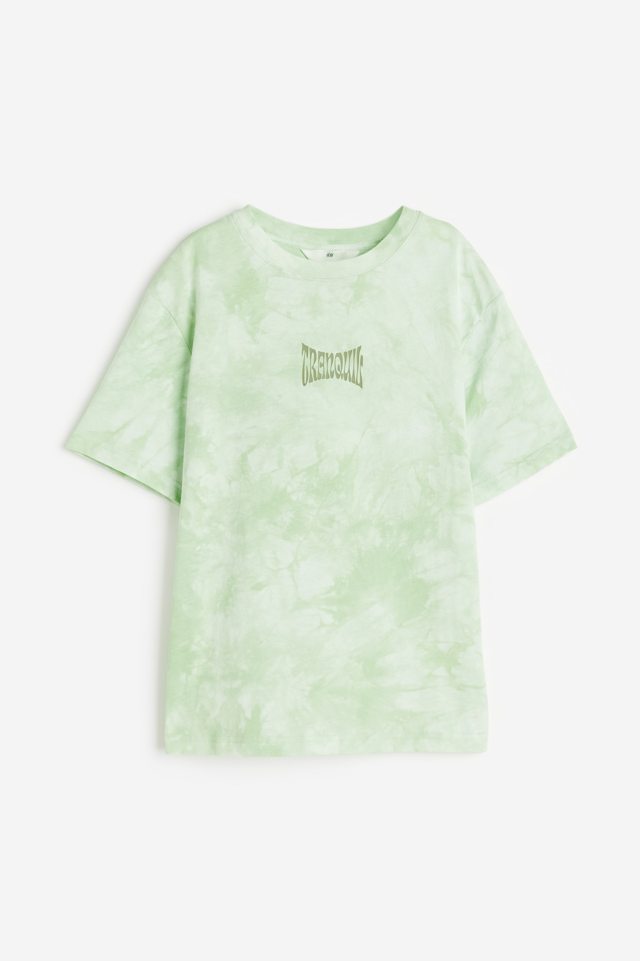 טישירט בגזרה משוחררת מג'רזי כותנה רך עם הדפס. צווארון עגול בסיומת ריב וכתפיים נמוכות מעט.
