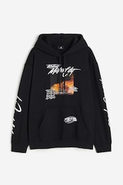 קפוצ'ון מבד פוטר עשוי תערובת כותנה בעובי בינוני עם הדפס וצד פנימי סרוק ורך. ברדס עם שכבת בד כפולה ושרוך קשירה, כתפיים נמוכות ושרוולים ארוכים. כיס קנגורו וסיומת ריב בחפתים ובשוליים. גזרה משוחררת לצללית רחבה שאינה אוברסייז.