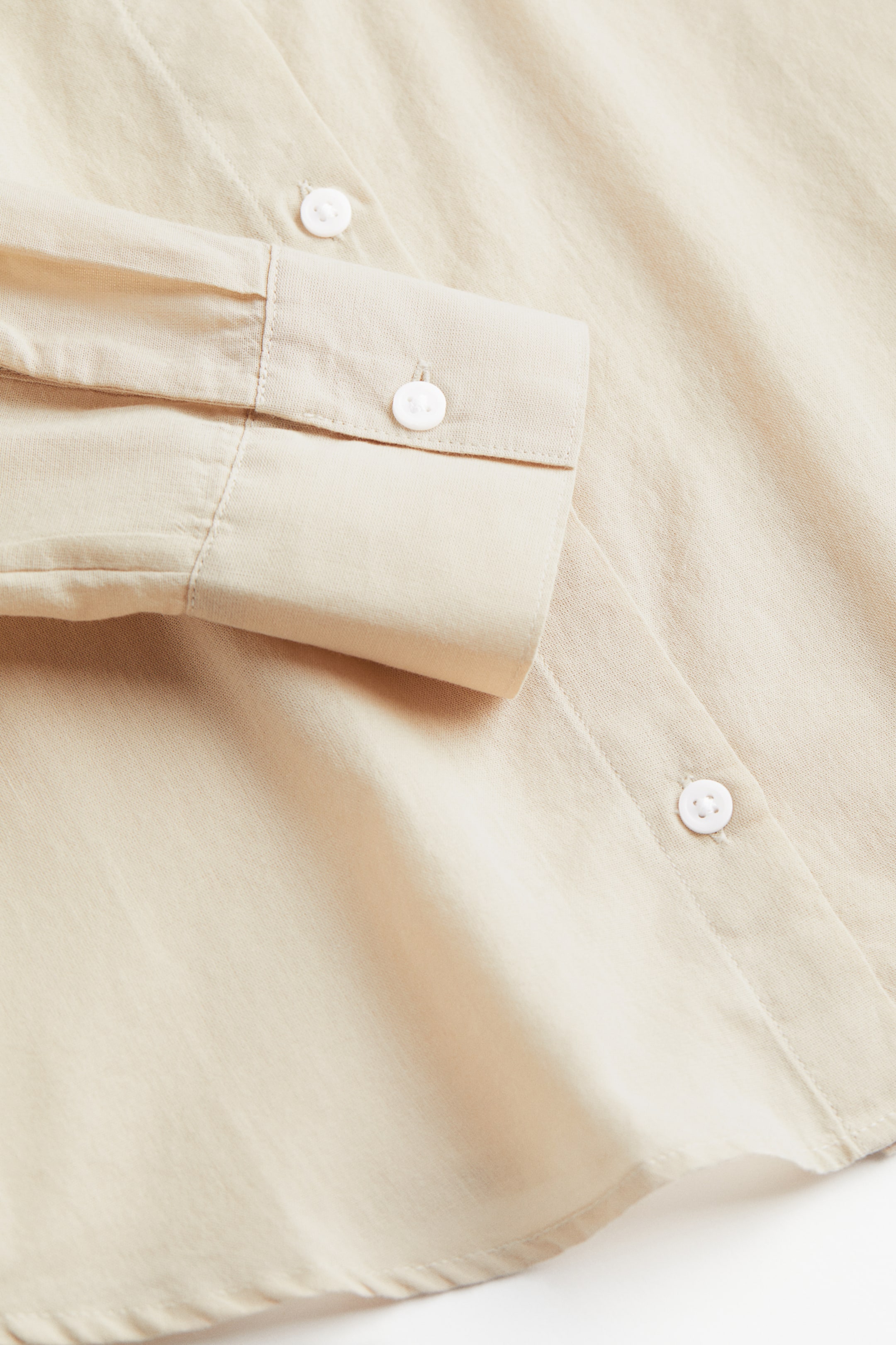 חולצה מאריג כותנה עם צווארון, כפתורים בחזית, שרוולים ארוכים עם כפתורים בחפתים ושוליים ישרים.