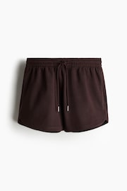 מכנסיים קצרים מבד פוטר דק עשוי תערובת כותנה עם גומי ושרוך לקשירה במותן וכיסים נסתרים בצדדים.